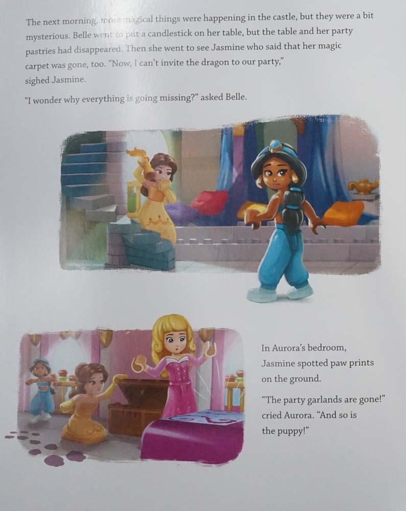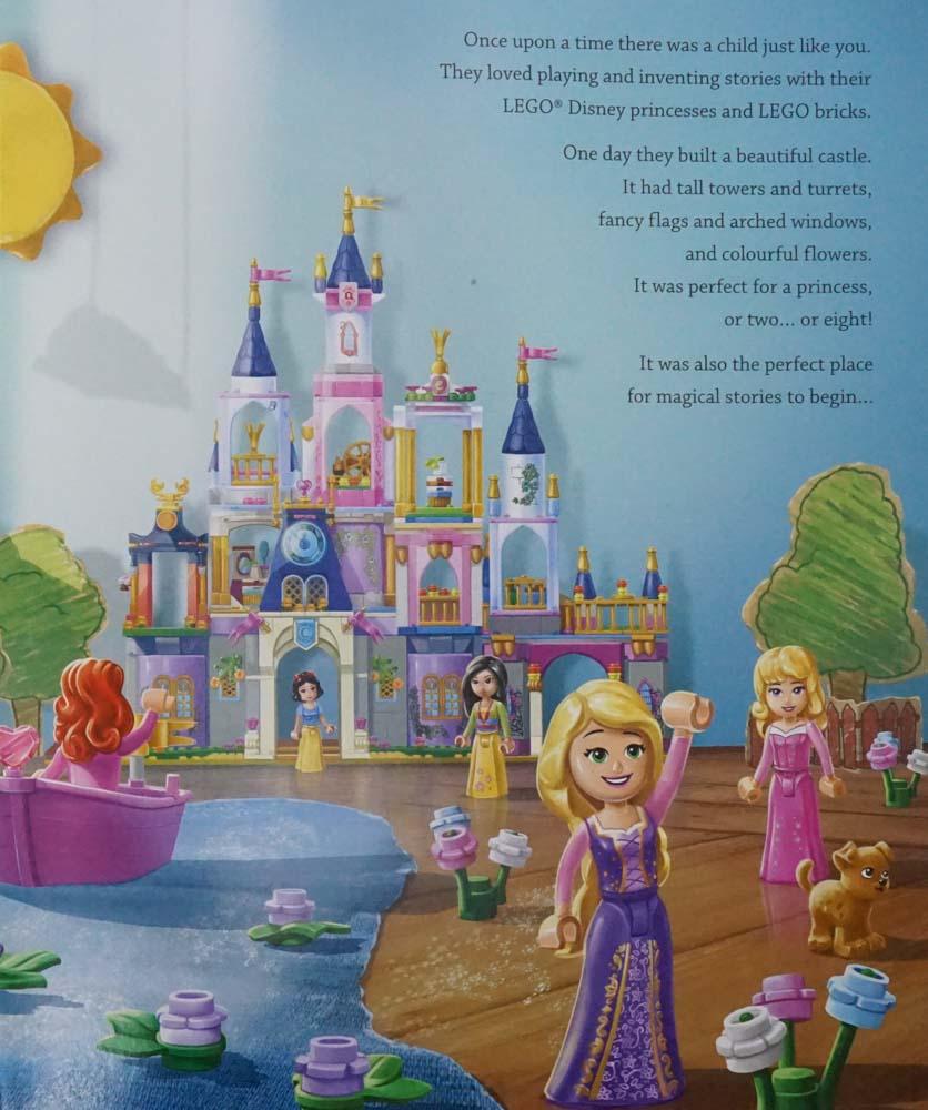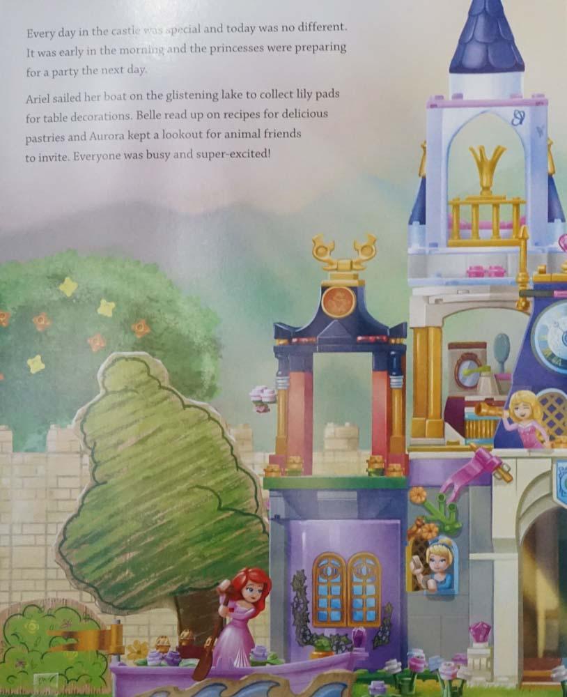 Build your miniset included with this book. Start reading the princess story. Put your miniset and other Lego on the 3rd play scene in this book. Use your play scene to finish the story.