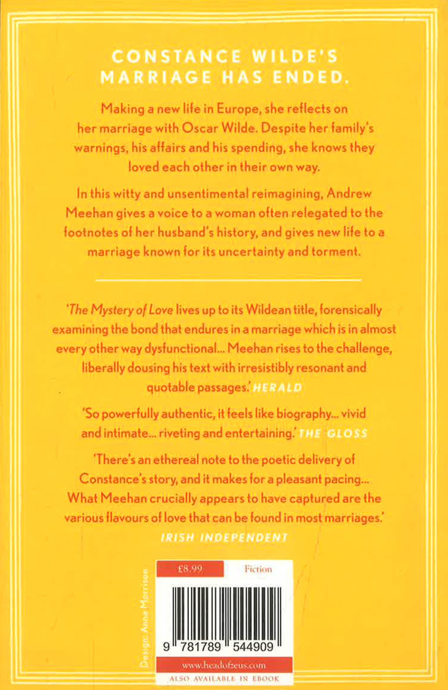 CONSTANCE WILDE'S MARRIAGE HAS ENDED. Making a new life in Europe, she reflects on her marriage with Oscar Wilde. Despite her family's warnings, his affairs and his spending, she knows they loved each other in their own way. In this witty and unsentimental reimagining, Andrew Meehan gives a voice to a woman often relegated to the footnotes of her husband's history, and gives new life to a marriage known for its uncertainty and torment.