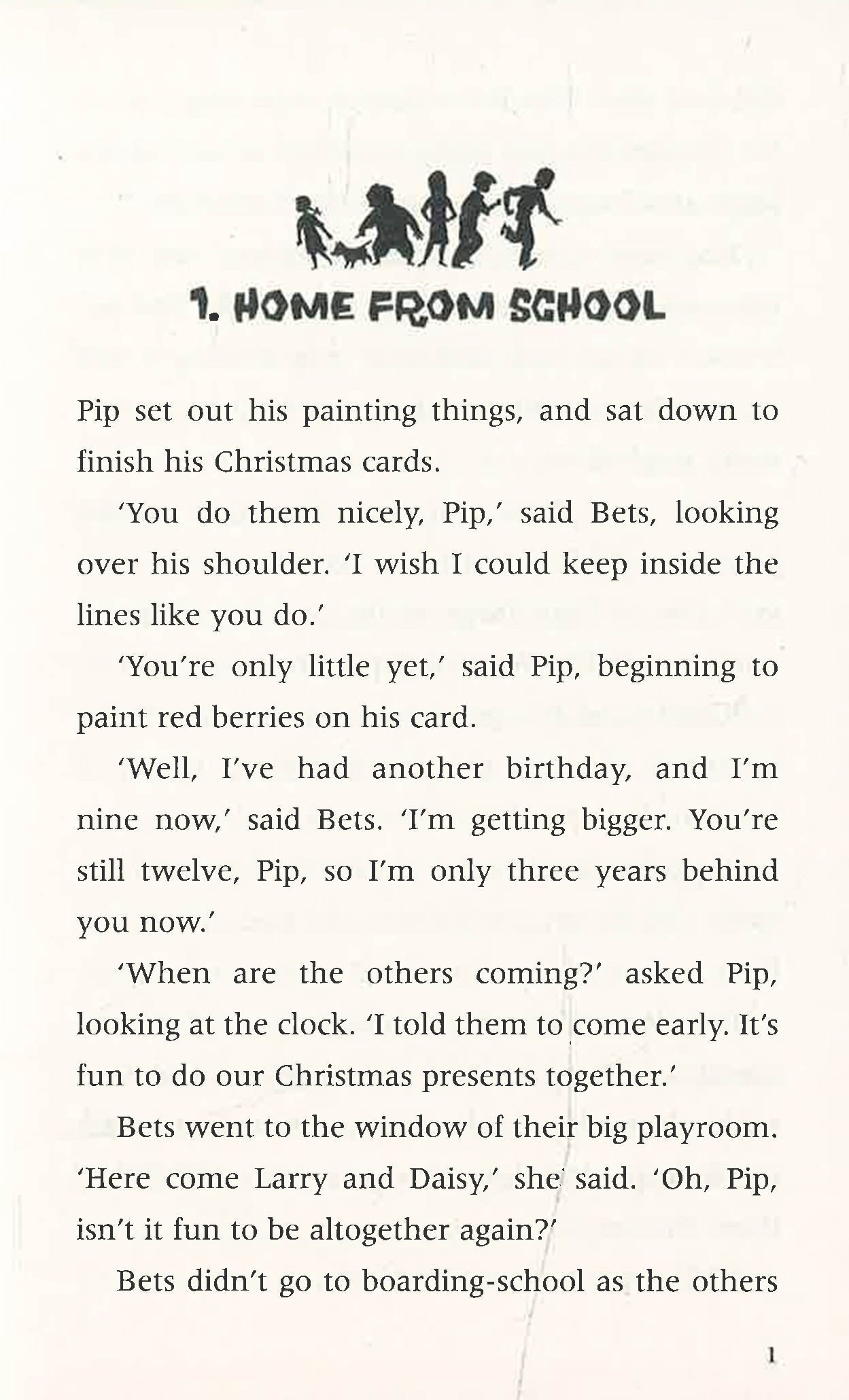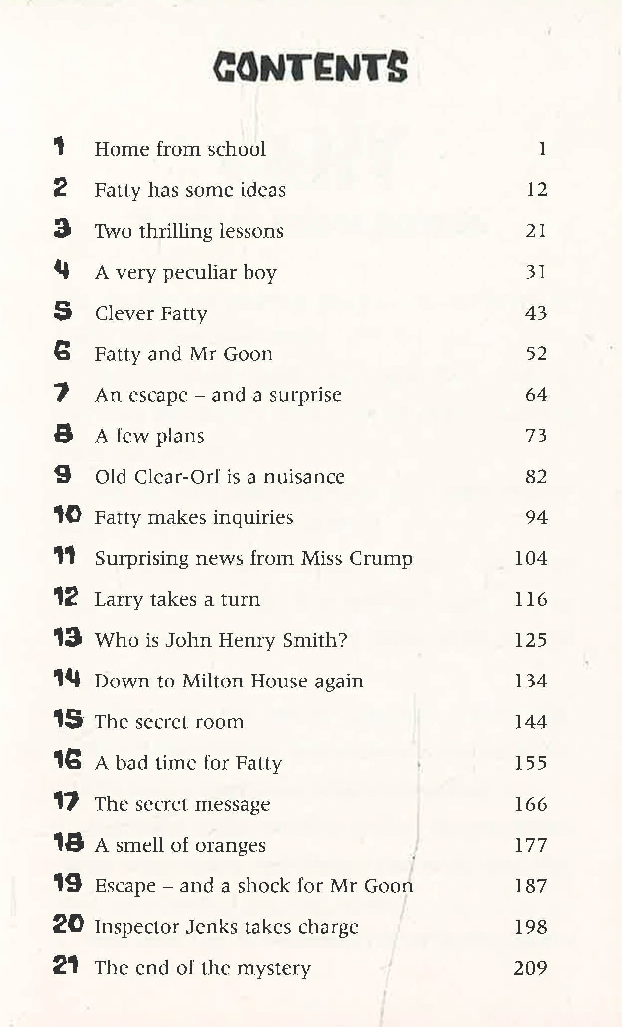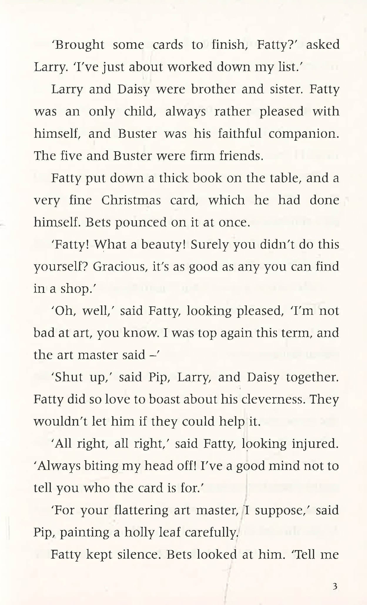 In the cold and foggy Christmas holidays, it doesn't seem as though the Five Find-Outers and Dog will have anything exciting to investigate. Fatty's got some wonderful new disguises, but there doesn't seem to be any mystery for them at all this time. Then Pip stumbles on a single furnished room in an otherwise deserted house. They try to find out whom the house belongs to, but they're not making much progress - until Fatty decides to go to the house to see what he can uncover. Suddenly trapped by the men inside, he writes a note to his friends, apparently innocuous enough, but with another secret message hidden beneath it. Mr Goon has tried investigating the house too, but only ends up locked in the coal cellar and covered in dust. The rest of the Find-Outers call Inspector Jenks to help Fatty, and find the house has been a place for storing stolen goods and the men inside are wanted criminals. Another mystery safely solved!