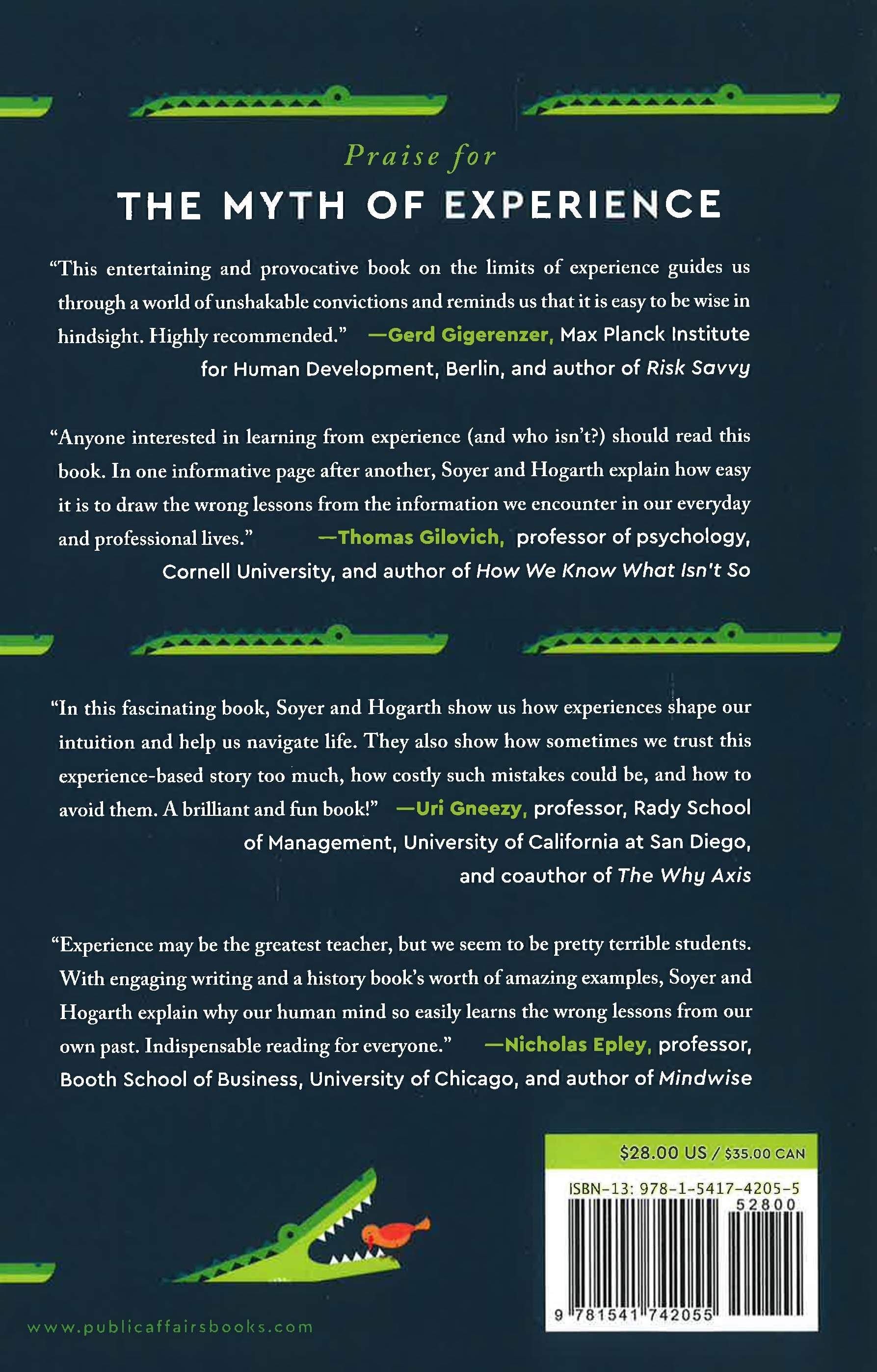 Experience is a great teacher-except when it isn't.Our personal experience is key to who we are and what we do. We judge others by their experience and are judged by ours. Society venerates experience. From doctors to teachers to managers to presidents, the more experience the better. It's not surprising then, that we often fall back on experience when making decisions, an easy way to make judgements about the future, a constant teacher that provides clear lessons. Yet, this intuitive reliance on experience is misplaced.In The Myth of Experience, behavioral scientists Emre Soyer and Robin Hogarth take a transformative look at experience and the many ways it deceives and misleads us. From distorting the past to limiting creativity to reducing happiness, experience can cause misperceptions and then reinforce them without our awareness. Instead, the authors argue for a nuanced approach, where a healthy skepticism toward the lessons of experience results in more reliable decisions and sustainable growth.With real-life examples from bloodletting to personal computers to pandemics, and distilling cutting edge research, Soyer and Hogarth illustrate the flaws of experience as a guide to decision making and provide the remedies needed to improve our judgments and choices-in the workplace and beyond.