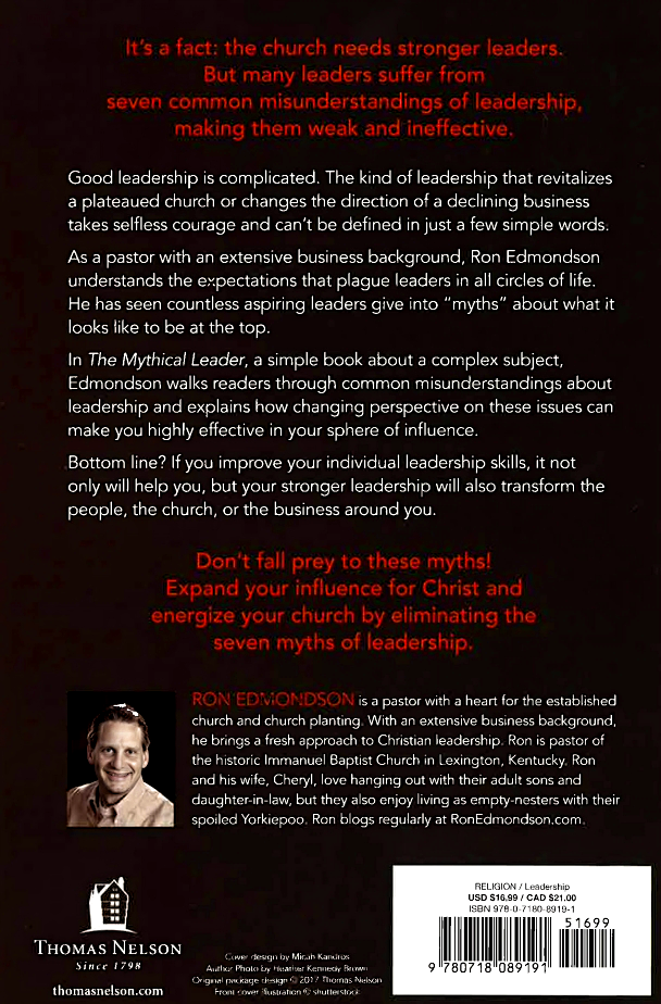 In The Mythical Leader, Edmondson exposes some of the most common misunderstandings of leadership, shares stories from his own experiences, and will help church leaders develop healthier patterns to improve their individual leadership.