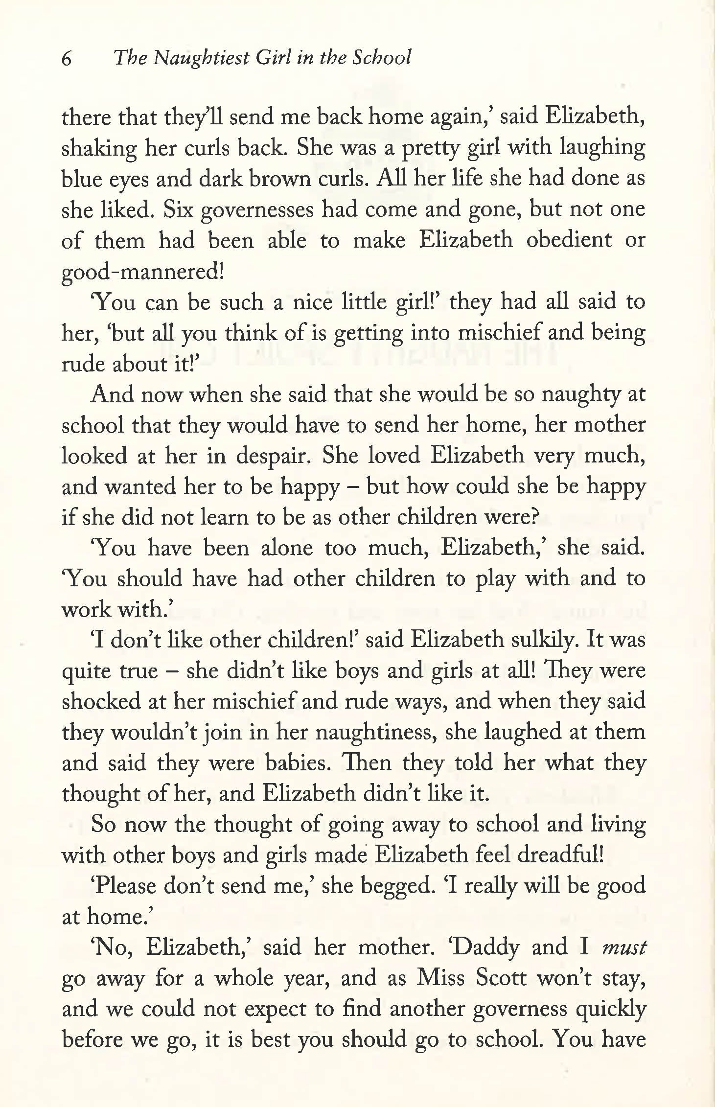 Enid Blyton's bestselling school series follows Elizabeth Allen as she is sent away to boarding school and makes up her mind to be the naughtiest pupil there's ever been. Book 1: The Naughtiest Girl In The School Elizabeth Allen is spoilt and selfish. When's she's sent away to boarding school she makes up her mind to be the naughtiest pupil there's ever been! But Elizabeth soon finds out that being bad isn't as simple as it seems ...Book 2: The Naughtiest Girl Again The naughtiest girl in the school is back! And this term she's trying to be good. But someone wants to spoil things for her. And they're not going to let her forget how she got her nickname! Book 3: The Naughtiest Girl Is A Monitor When Elizabeth Allen is chosen to be a school monitor, she's delighted. But she soon finds out just what a responsible job it is. The harder she tries, the worse she behaves! Will the naughtiest girl in the school EVER learn to be good? Between 1940 and 1952, Enid Blyton wrote four novels about Naughtiest Girl, Elizabeth Allen. This collection contains the original stories and is unillustrated.