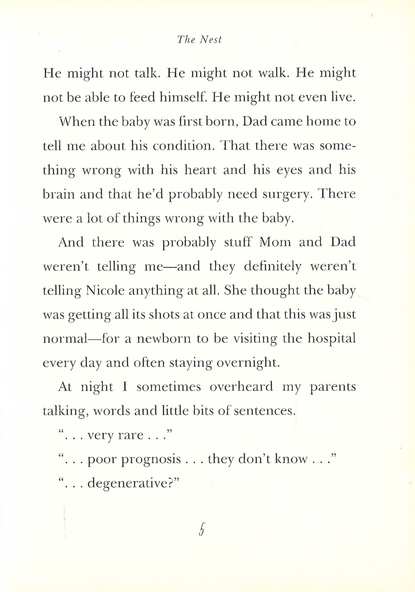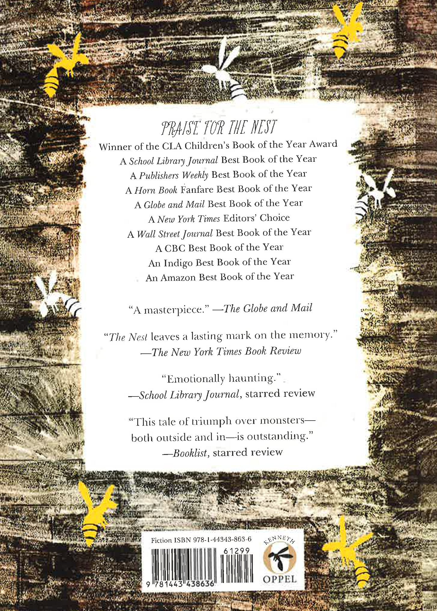 A New York Times Editor's Choice and a Best Book of the Year in the Globe and Mail, Publishers Weekly, Horn Book, School Library Journal and The Wall Street Journal , called "a masterpiece" ( Globe and Mail ) and now in paperback She was very blurry, not at all human looking. There were huge dark eyes, and a kind of mane made of light, and when she spoke, I couldn't see a mouth moving, but I felt her words, like a breeze against my face, and I understood her completely. "We've come because of the baby," she said. "We've come to help." In this beautiful, menacing novel, perfect for fans of Neil Gaiman's Coraline , an anxious boy becomes convinced that angels will save his sick baby brother. But these are creatures of a very different kind, and their plan for the baby has a twist. Layer by layer, the boy unravels the truth about his new friends as the time remaining to save his brother ticks down. With evocative and disquieting illustrations by Caldecott Medal- and Governor General's Award-winning artist Jon Klassen, The Nest is an unforgettable journey into one boy's deepest insecurities and darkest fears.