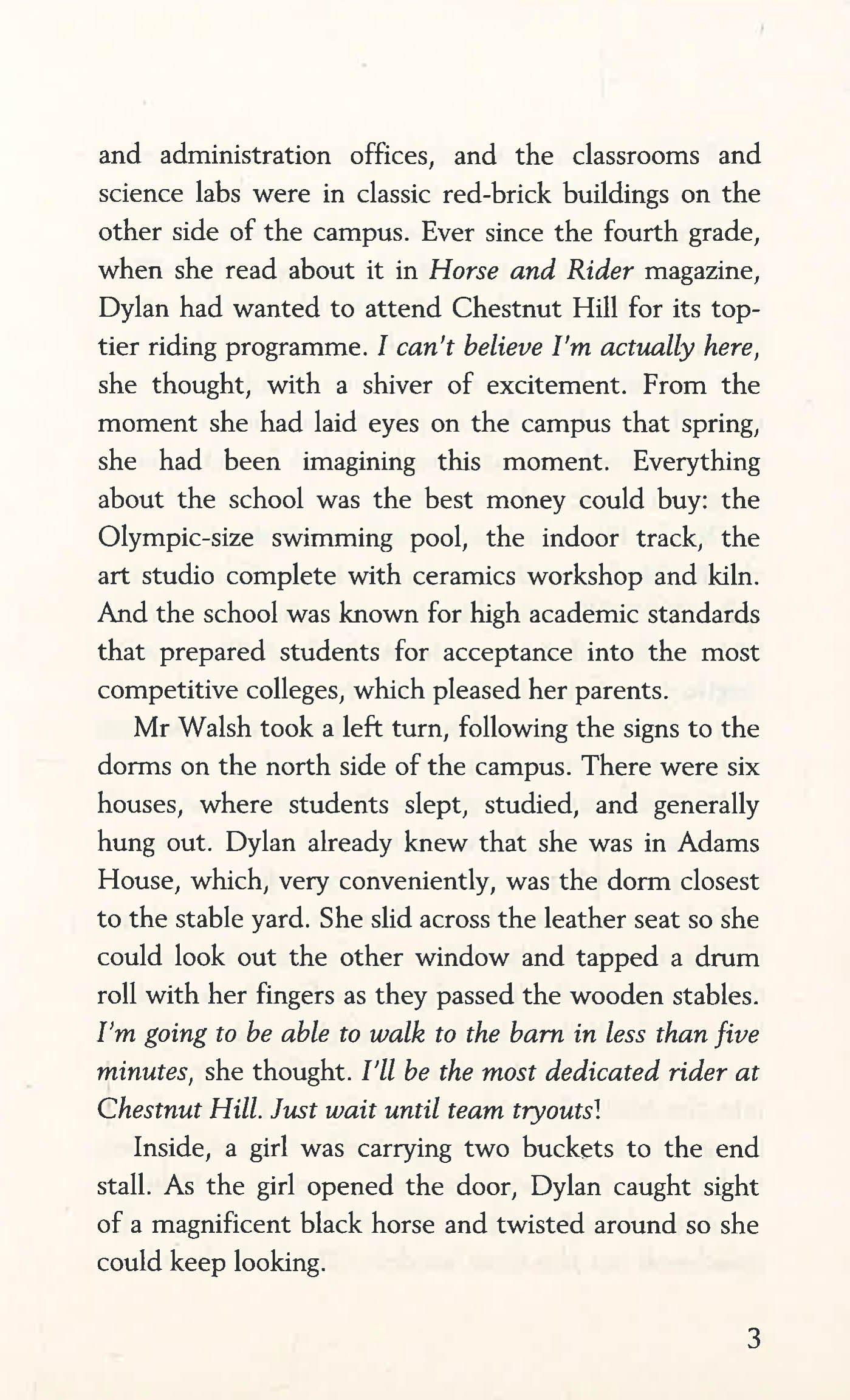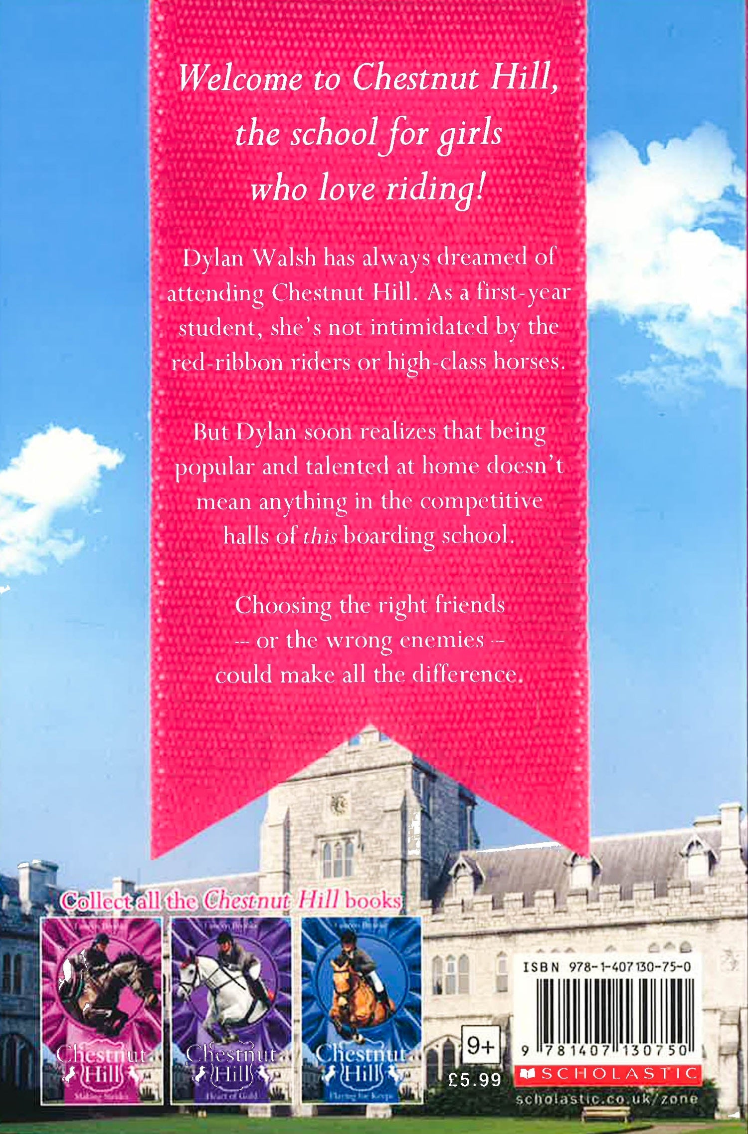 Welcome to Chestnut Hill, the boarding school where every girl's favourite subject is riding! Dylan Walsh has always dreamed of attending Chestnut Hill. Even though she's a first year, Dylan's not intimidated by the red-ribbon riders or high-class horses. But Dylan soon realizes being popular and talented at home doesn't mean anything at Chestnut Hill. When it's time to prove herself, choosing the friends - or the wrong enemies - could make all the difference. More titles available: MAKING STRIDES (9781407130767), HEART OF GOLD (9781407130774) and PLAYING FOR KEEPS (9781407130781).