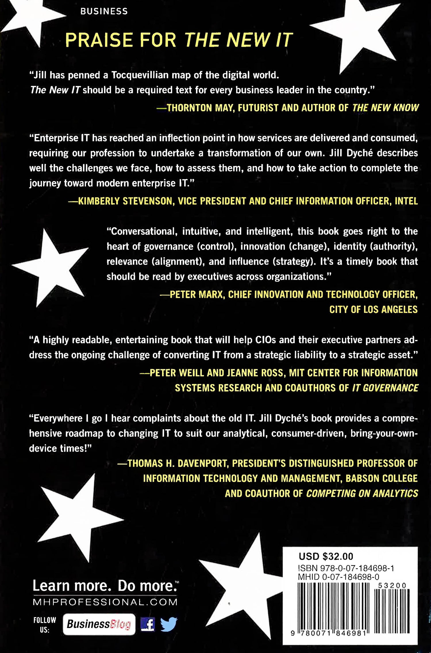 Introducing a Powerful New Business Model for Today's ITBlogger, speaker, software executive, and bestselling author Jill Dyche has been thinking about leadership a lot lately. Having consulted with business and IT executives with Fortune 500 companies for most of her career, she has heard a common refrain: "What should we do about shadow IT?" She's decided to address the answer head-on.With the onslaught of cloud solutions, consumerization of technology, and increasingly tech-savvy business people, it's time for a manifesto for leaders who recognize-and are nervous about-the demands of the digital age. Whether you're an executive, department head, or IT manager, The New IT provides an action-ready blueprint for building and strengthening the role of IT in your company-and prescribing IT's future. Learn how to:ASSESS your current and future IT profileALIGN your IT organization with business prioritiesMAP technology delivery plans according to business priioritiesORGANIZE IT according to your company's culture and strengthsREDEFINE innovation and talent management practices BUILD a stronger and enduring role for IT as a business partnerBy using field-tested techniques to align your IT department with your corporate objectives, you can leverage the power of technology across the entire company. The New IT provides a set of tactical and experienced-based frameworks to help you and your colleagues conceive a new roadmap. It also includes real-world case studies and best practices from successful, technology-enabled companies such as Toyota, Merck, Brooks Brothers, Union Bank, and many others. You'll hear from major industry pioneers, IT thought leaders, and other change agents who are leading the way in this new frontier. And you'll learn how to bring your business and IT together in a way that is truly transformative.The new IT is more than computing power. It balances strategy and delivery. It's interactive and inclusive. It's as omnipresent as the smart phone and just as revolutionary. It equips you with the tools you need to succeed in reframing the IT conversation and propelling your business forward.