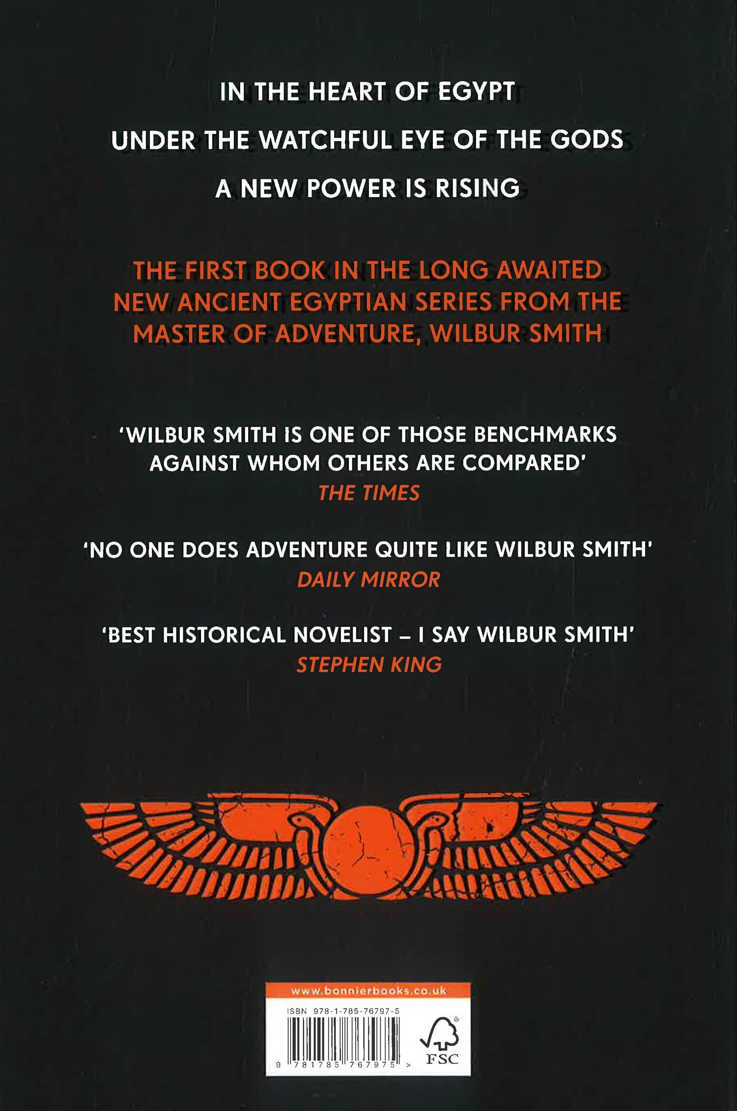 A brand-new Ancient Egyptian novel from the master of adventure fiction and global number 1 bestselling author, Wilbur Smith. In the heart of Egypt Under the watchful eye of the gods A new power is rising In the city of Lahun, Hui lives an enchanted life. The favoured son of a doting father, and ruler-in-waiting of the great city, his fate is set. But behind the beautiful façades a sinister evil is plotting. Craving power and embittered by jealousy, Hui's stepmother, the great sorceress Isetnofret, and Hui's own brother Qen, orchestrate the downfall of Hui's father, condemning Hui and seizing power in the city. Cast out and alone, Hui finds himself a captive of a skilled and powerful army of outlaws, the Hyksos. Determined to seek vengeance for the death of his father and rescue his sister, Ipwet, Hui swears his allegiance to these enemies of Egypt. Through them he learns the art of war, learning how to fight and becoming an envied charioteer. But soon Hui finds himself in an even greater battle - one for the very heart of Egypt itself. As the pieces fall into place and the Gods themselves join the fray, Hui finds himself fighting alongside the Egyptian General Tanus and renowned Mage, Taita. Now Hui must choose his path - will he be a hero in the old world, or a master in a new kingdom? Don't miss the rest of the epic Ancient Egyptian Series, River God, The Seventh Scroll, Warlock, The Quest, Desert God and Pharaoh, available now. And Wilbur Smith will return to Ancient Egypt in 2022. - - - - - - - - - PRAISE FOR WILBUR SMITH: 'Best historical novelist' Stephen King 'A master storyteller' Sunday Times 'Wilbur Smith is one of those benchmarks against whom others are compared' The Times 'No one does adventure quite like Smith' Daily Mirror