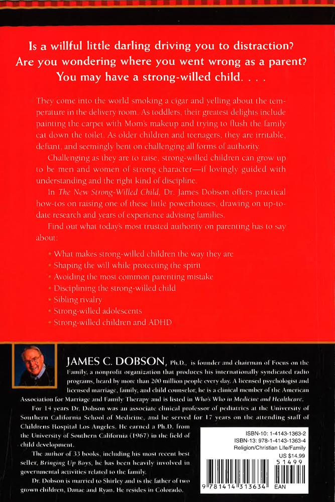 2005 Gold Medallion Award finalist! Dr. James Dobson has completely rewritten, updated, and expanded his classic best seller "The Strong-Willed Child" for a new generation of parents and teachers. The New Strong-Willed Child follows on the heels of Dr. Dobson's phenomenal best seller "Bringing Up Boys." It offers practical how-to advice on raising difficult-to-handle children and incorporates the latest research with Dr. Dobson's legendary wit and wisdom. "The New Strong-Willed Child" is being rushed to press for parents needing help dealing with sibling rivalry, adhd, low self-esteem, and other important issues. This book is a must-read for parents and teachers struggling to raise and teach children who are convinced they should be able to live by their own rules!