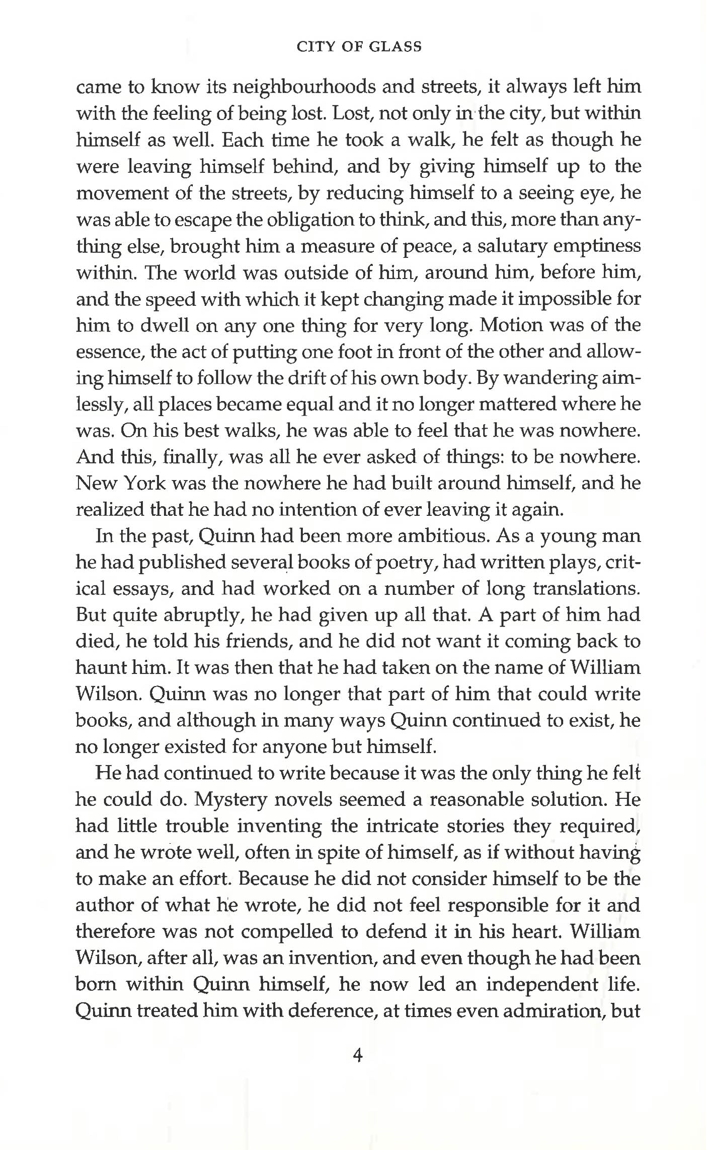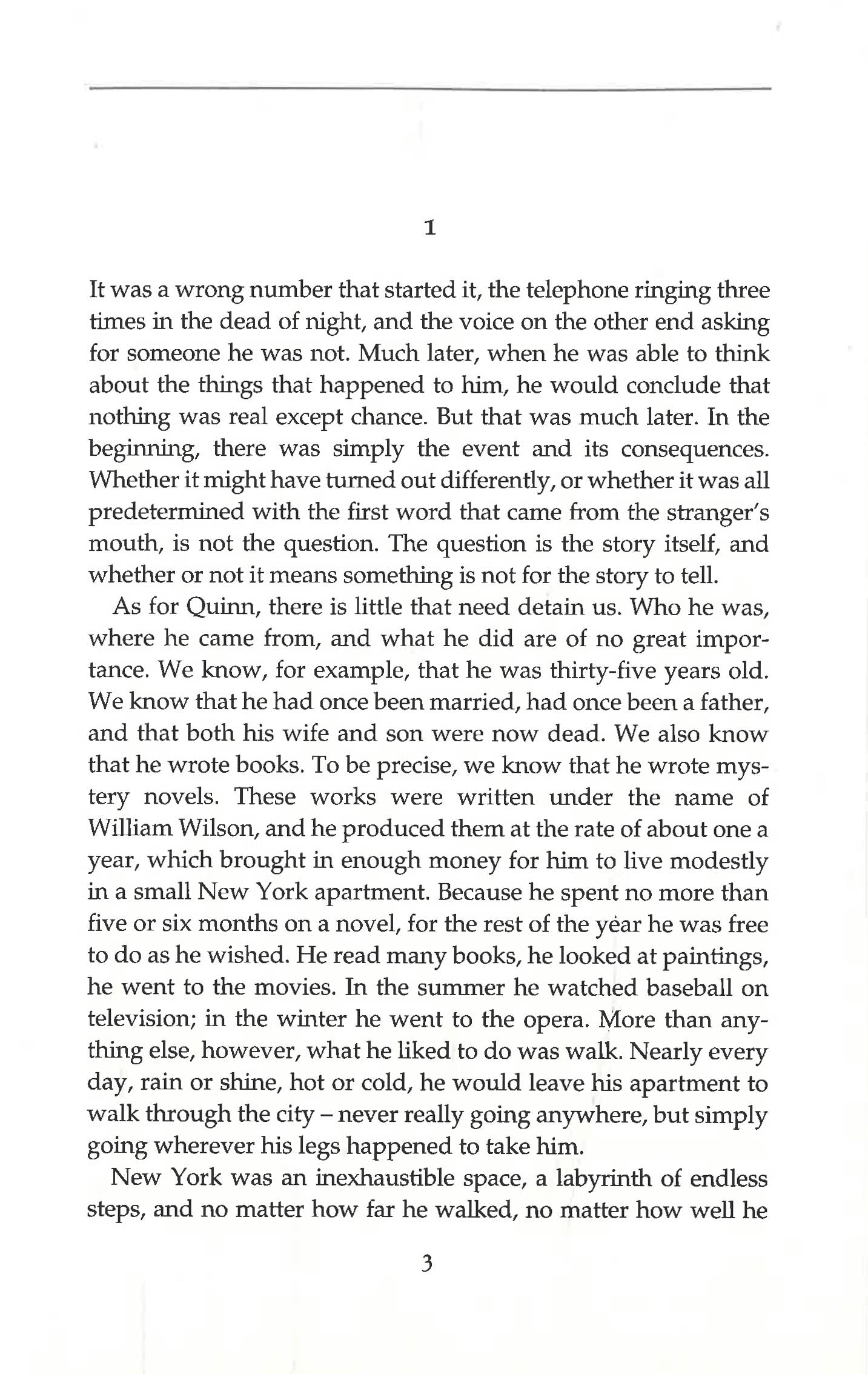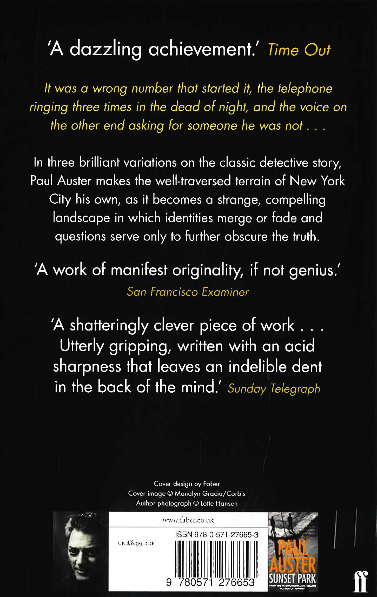 The New York Trilogy is perhaps the most astonishing work by one of America's most consistently astonishing writers. The Trilogy is three cleverly interconnected novels that exploit the elements of standard detective fiction and achieve a new genre that is all the more gripping for its starkness. It is a riveting work of detective fiction worthy of Raymond Chandler, and at the same time a profound and unsettling existentialist enquiry in the tradition of Kafka or Borges. In each story the search for clues leads to remarkable coincidences in the universe as the simple act of trailing a man ultimately becomes a startling investigation of what it means to be human. The New York Trilogy is the modern novel at its finest: a truly bold and arresting work of fiction with something to transfix and astound every reader.