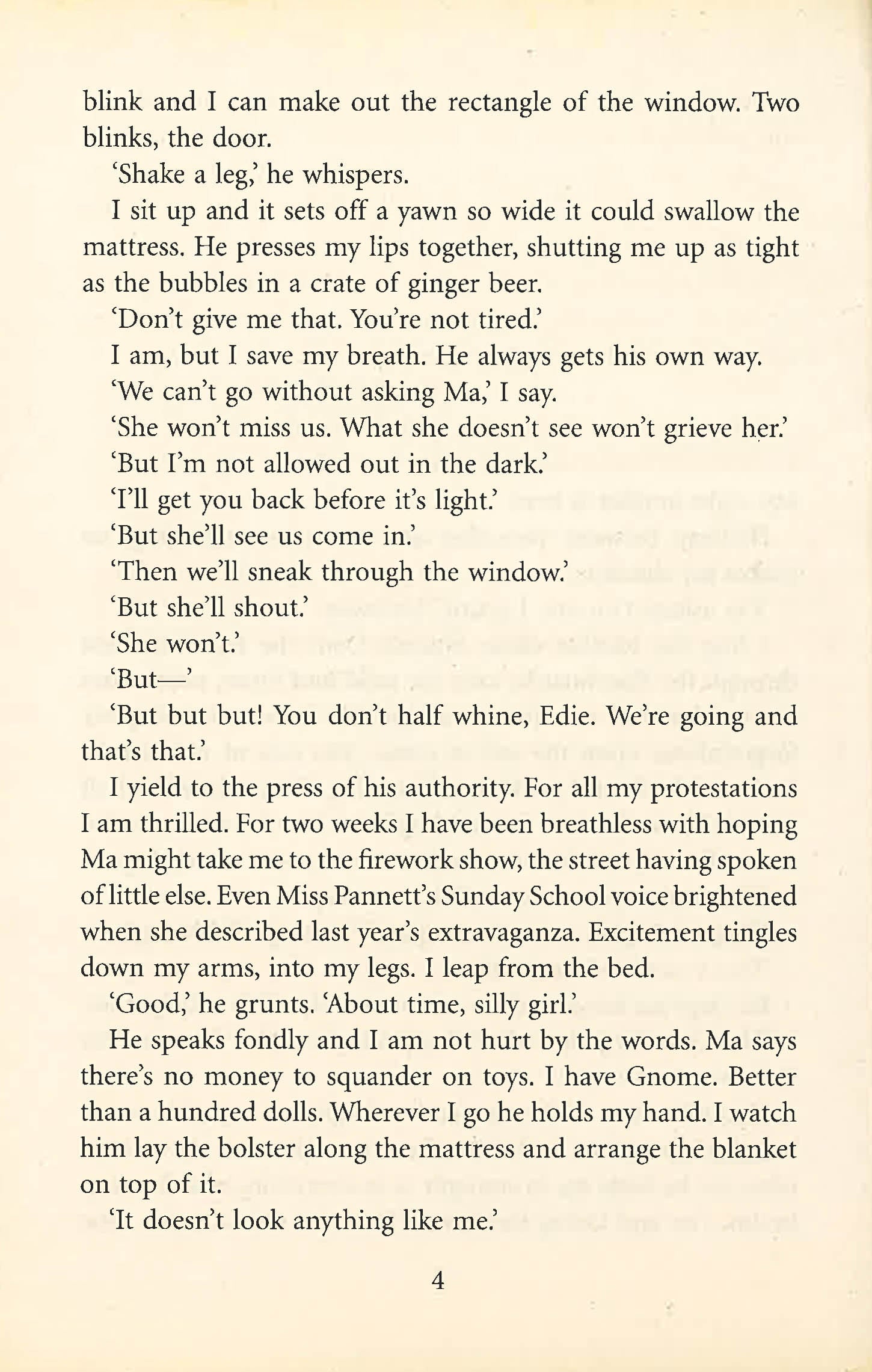 Late nineteenth-century Manchester is a city of charms and dangers - the perfect playground for young siblings, Edie and Gnome. But as they grow up, they grow apart, and while Gnome revels in the night-time, Edie wakes each morning, exhausted and uneasy, with only a dim memory of the dark hours.