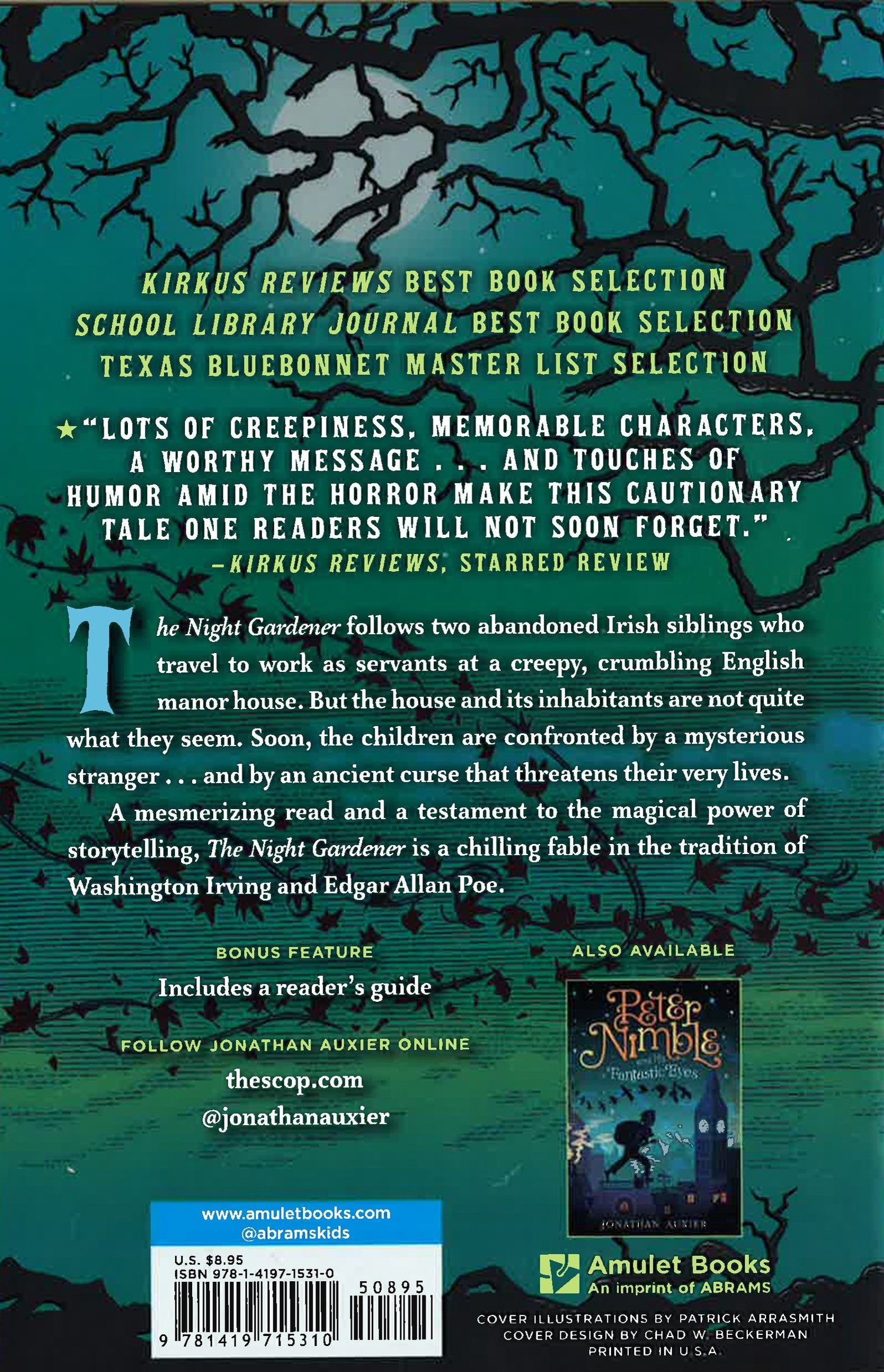 The Night Gardener follows two abandoned Irish siblings who travel to work as servants at a creepy, crumbling English manor house. But the house and its family are not quite what they seem. Soon the children are confronted by a mysterious spectre and an ancient curse that threatens their very lives. With Auxier's exquisite command of language, The Night Gardener is a mesmerizing read and a classic in the making.