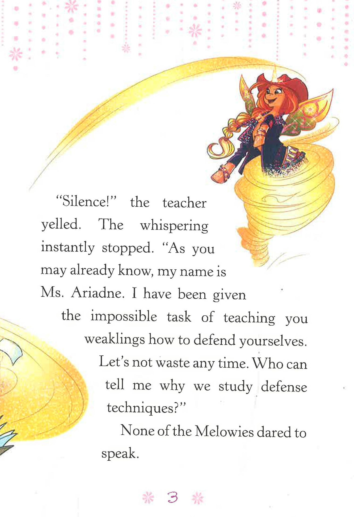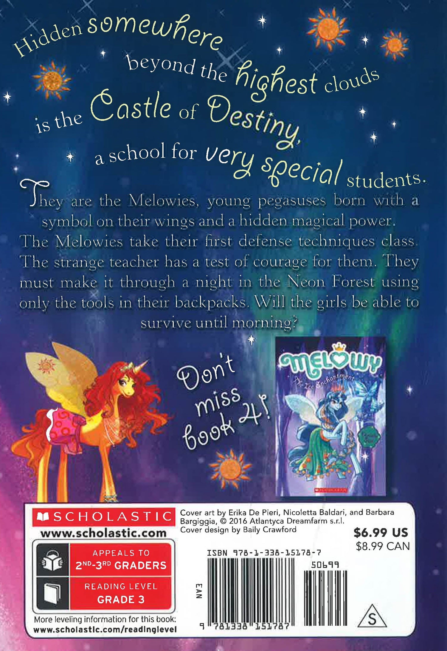 The Defence Techniques teacher tests the girls on their survival skills, leaving them in the Forest of Colors overnight. They use a manual she has left them to build shelter and cook dinner. Electra wanders from the group in the night and gets lost, sending the rest of the Melowies on a mission to find her. They split up and use different skills to pass the test.Upon returning to Destino they learn that the missing Melowy was all part of the test of frienship. They all passed with flying colors, even with their rival Melowy Eris trying to foil their plans.