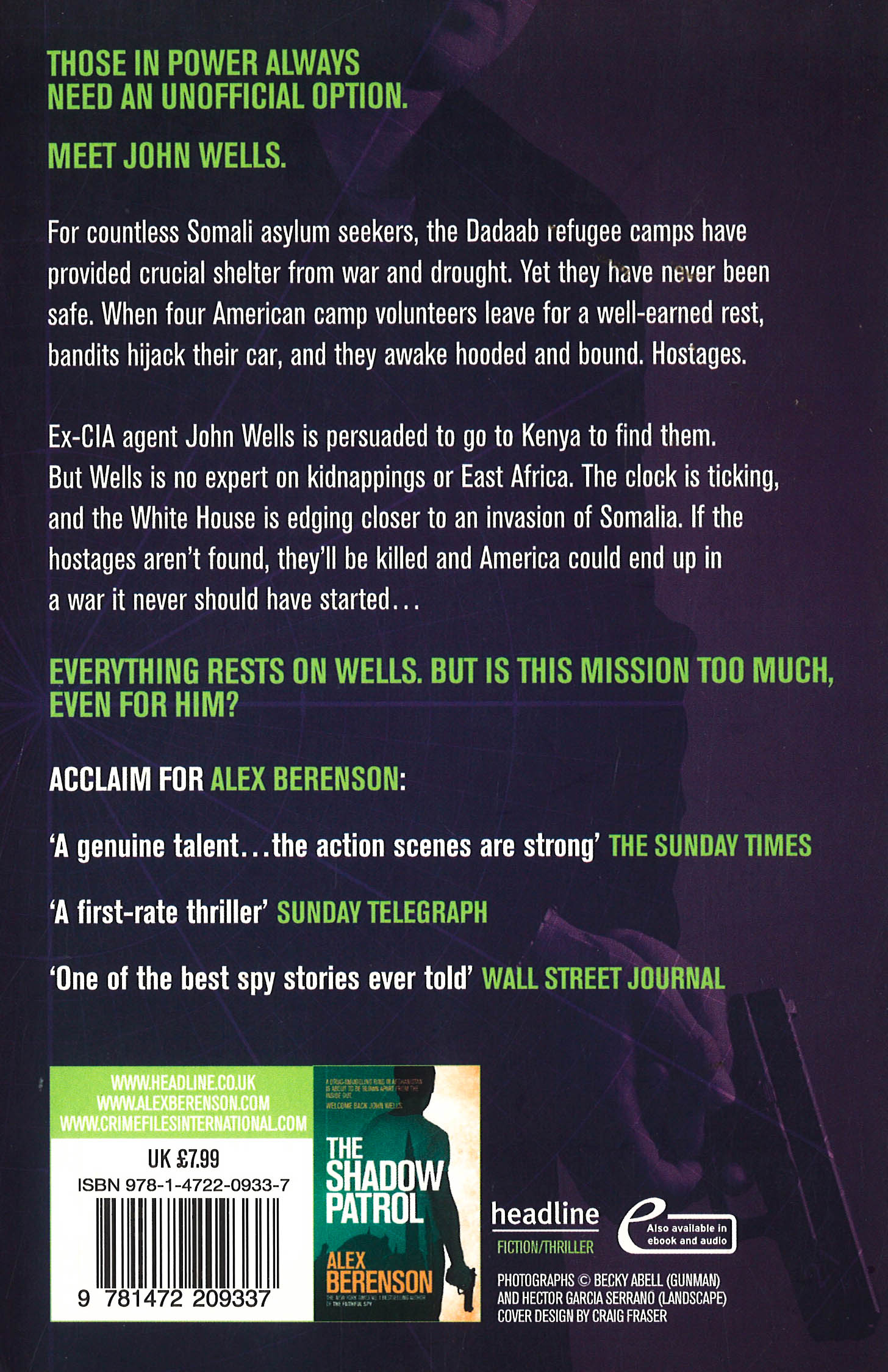 This is NYT bestselling author Alex Berenson's seventh gripping spy novel featuring ex-CIA agent John Wells. For countless Somali asylum seekers, the Dadaab refugee camps have provided crucial shelter from war and drought. Yet they have never been safe. When four American camp volunteers leave for a well-earned rest, bandits hijack their car, and they awake hooded and bound. Hostages. Ex-CIA agent John Wells is persuaded to Kenya to find them. But Wells is no expert on kidnappings or East Africa. The clock is ticking, and the White House is edging closer to an invasion of Somalia. If the hostages aren't found, they'll be killed and America could end up in a war it never should have started... Everything rests on Wells. But is this mission too much, even for him?
