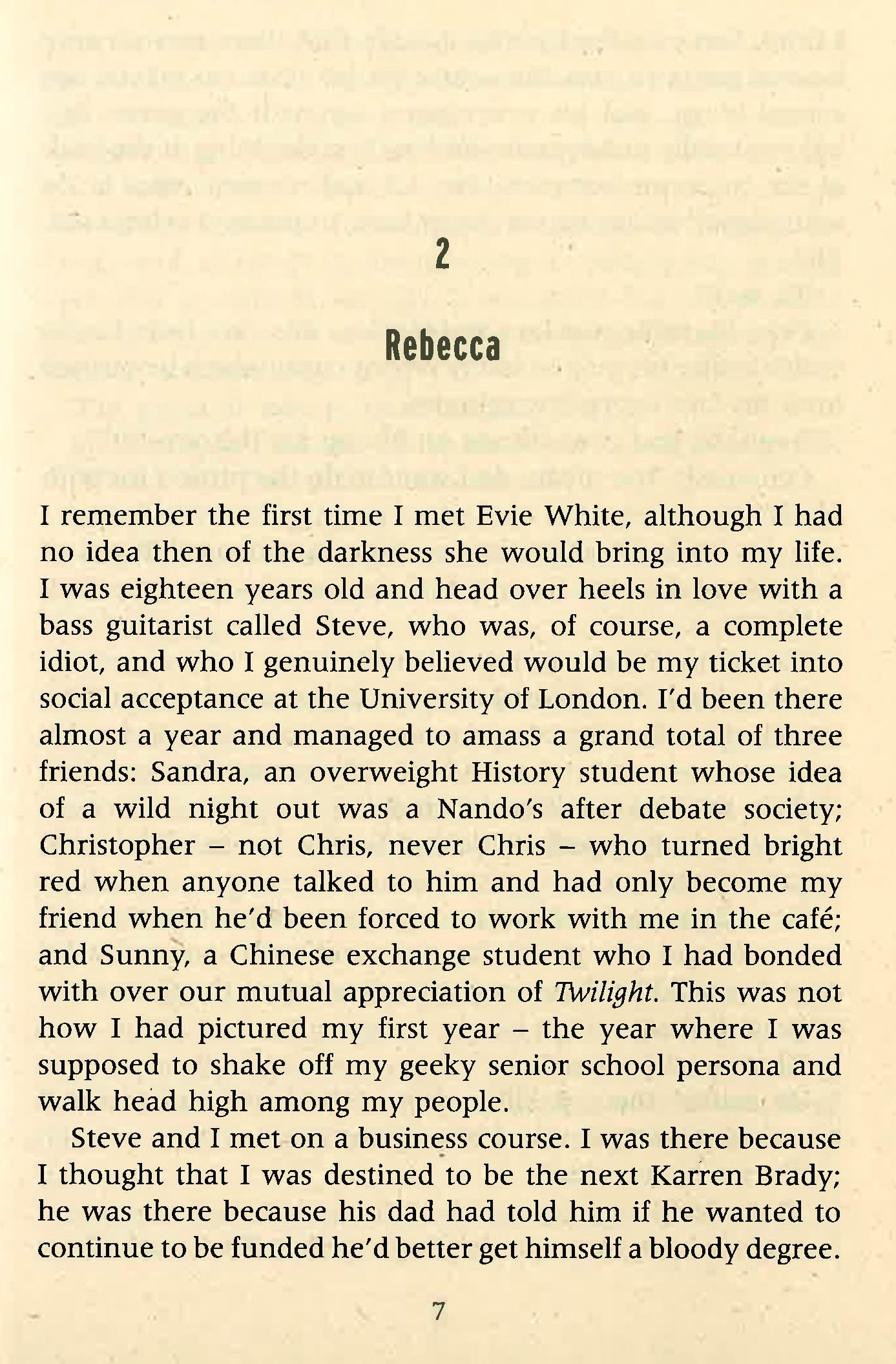 On her own wedding night, beautiful and complicated Evie White leaps off a cliff to her death. What drove her to commit this terrible act? It's left to her best friend and her husband to unravel the sinister mystery. Following a twisted trail of clues leading to Evie's darkest secrets, they begin to realize they never knew the real Evie at all...