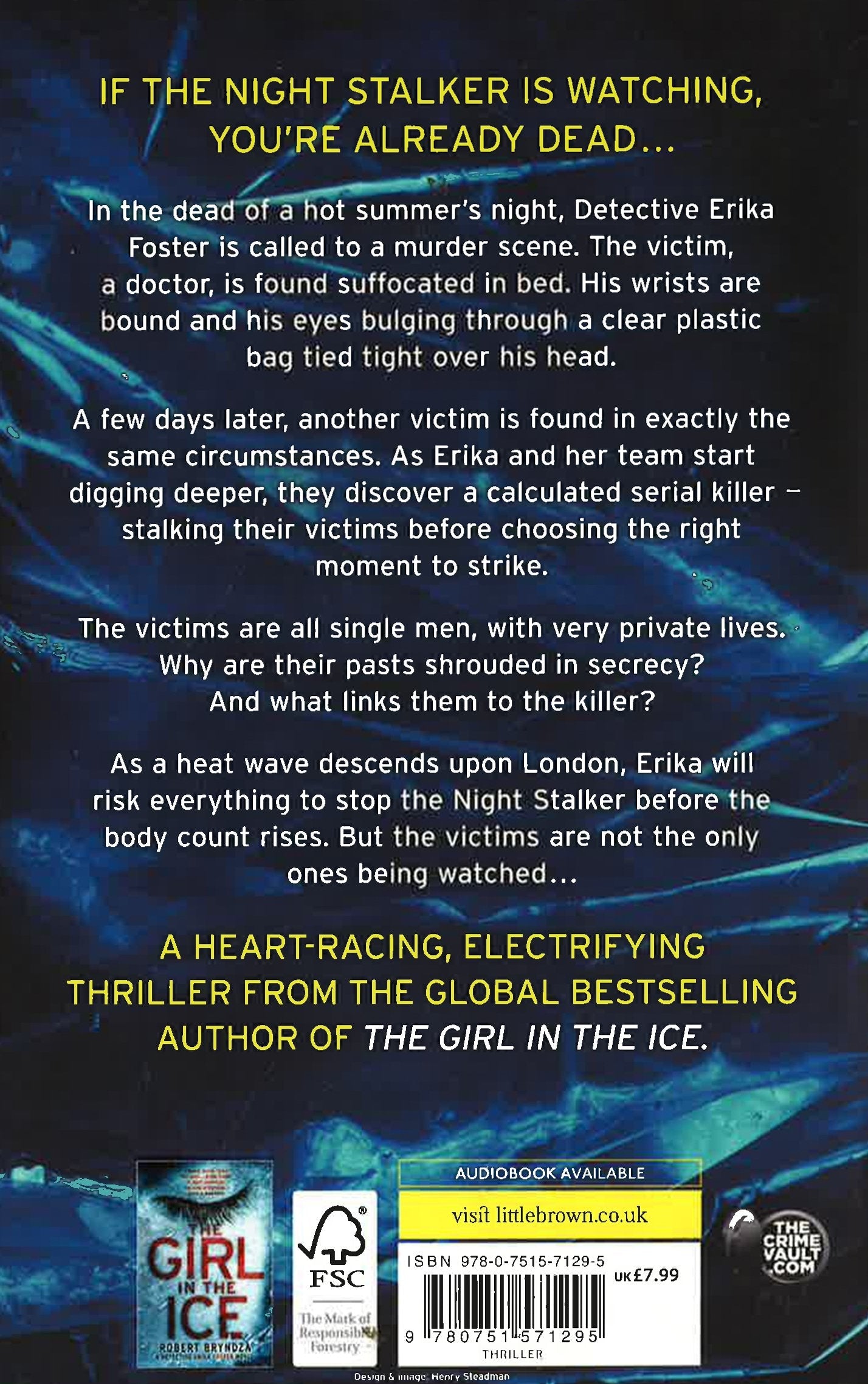 Absolutely brilliant ...impossible to put this book down! ... A must read' The Quiet Knitter If the Night Stalker is watching, you're already dead... In the dead of a swelteringly hot summer's night, Detective Erika Foster is called to a murder scene. The victim, a doctor, is found suffocated in bed. His wrists are bound and his eyes bulging through a clear plastic bag tied tight over his head. A few days later, another victim is found dead, in exactly the same circumstances. As Erika and her team start digging deeper, they discover a calculated serial killer - stalking their victims before choosing the right moment to strike. The victims are all single men, with very private lives. Why are their pasts shrouded in secrecy? And what links them to the killer? As a heat wave descends upon London, Erika will do everything to stop the Night Stalker before the body count rises, even if it means risking her job. But the victims might not be the only ones being watched... Erika's own life could be on the line. The global bestselling author of The Girl in the Ice is back with a heart-racing, electrifying thriller. If you love Angela Marsons, Rachel Abbott and Peter James, you'll be hooked on Robert Bryndza. Read what people are saying about The Night Stalker 'The Night Stalker is dark, fast-paced and shot through with wit and psychological insight. I couldn't put it down.' Mark Edwards 'Erika is fast becoming one of my favourite detectives...I absolutely loved this heart-pounding, fast-paced, chilling crime thriller.' The Book Review Cafe 'Just when I thought it couldn't get any better...From the first page, we're sucked in with tension that had me holding my breath.' The Suspense is Thrilling Me 'A truly brilliant crime series...The Night Stalker made me feel like I had been swept up in a whirlwind and had me clinging on for dear life, only letting me go right at the very end.' By The Letter Book Reviews 'Intense, suspenseful, and clever??...a gripping page turner that is disturbingly real, and I highly recommend it.' What's Better Than Books? 'A truly fantastic and exciting serial killer chiller!' Booklover Catlady 'The Night Stalker is a very gripping, engaging read full of nail-biting tension. Once I started reading it, I couldn't stop!...an amazing work of fiction no reader of the crime genre should miss.' Relax and Read Reviews 'I think any fans of a good police procedural will become completely engaged in this series featuring a gritty and determined strong female lead.' Carrie's Book Reviews 'This book grabbed me by the throat and didn't let go till I got to the end.' Sincerely Book Angels The Night Stalker now a Wall Street Journal #1 best seller