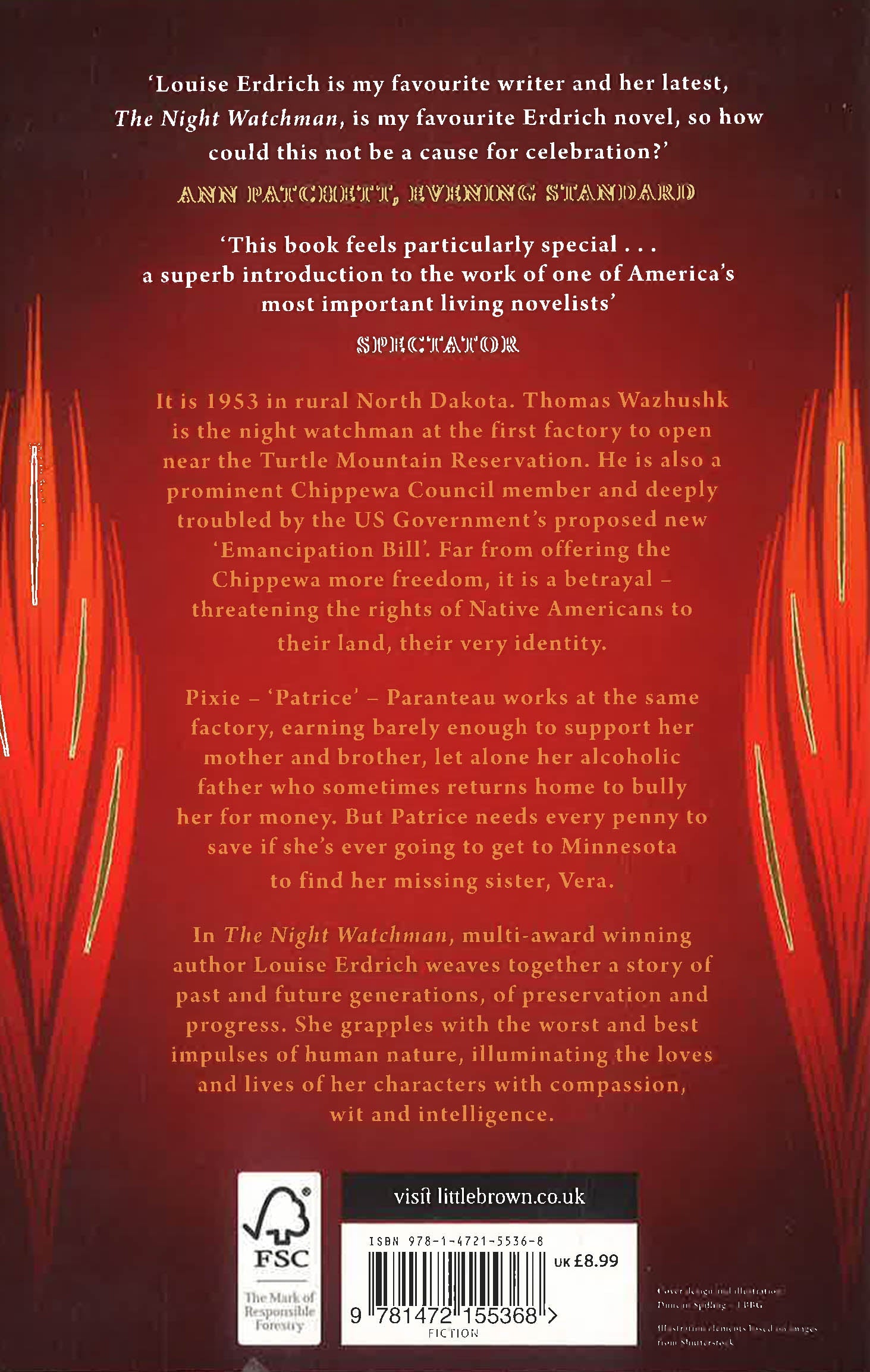 In The Night Watchman multi-award winning author Louise Erdrich weaves together a story of past and future generations, of preservation and progress. She grapples with the worst and best impulses of human nature, illuminating the loves and lives, desires and ambitions of her characters with compassion, wit and intelligence.