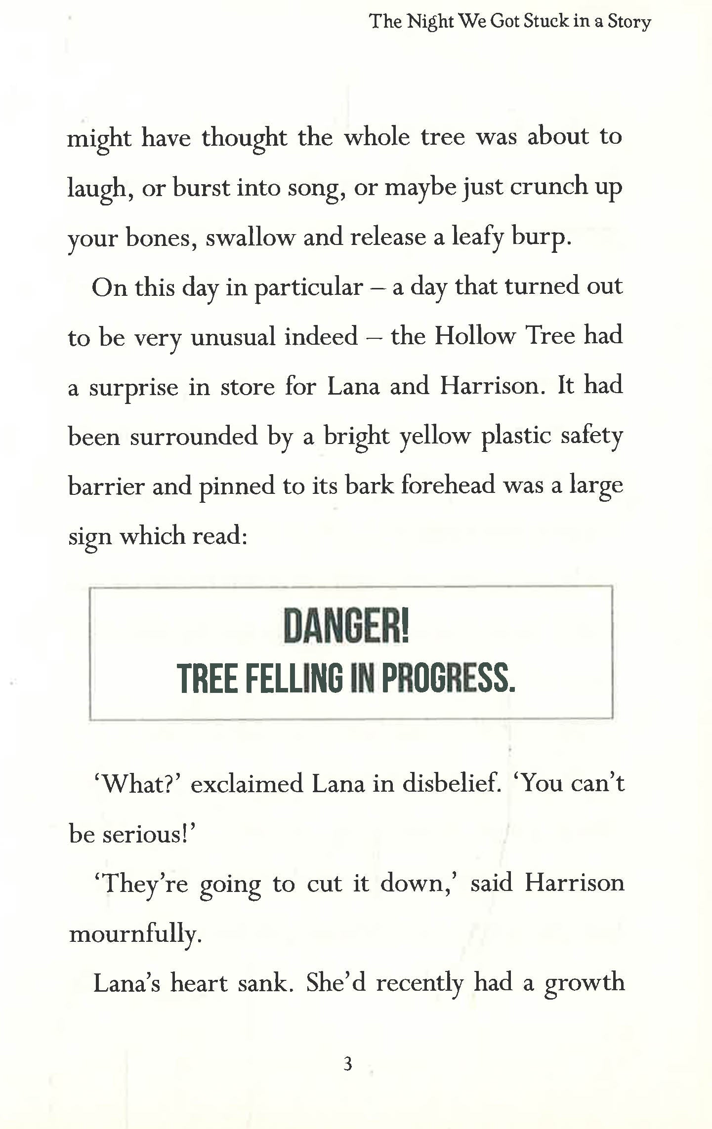 Lana and Harrison are staying with their grandparents, when they discover their favourite tree to play in is under threat. That night, a magical golden thread leads them up through the hollow of the tree into a storybook land, where wind and rain rage and a mysterious creature lives.