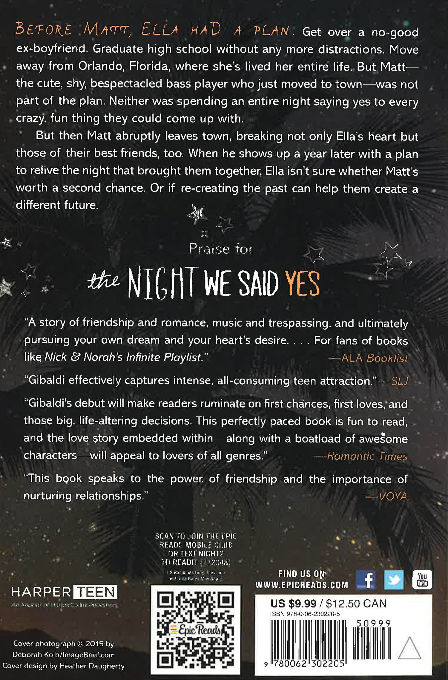 A fun, romantic read, perfect for fans of Sarah Dessen and Susane Colasanti! What happens when Matt and Ella reunite one year after their breakup? Are second chances really possible? Before Matt, Ella had a plan. Get over her ex-boyfriend and graduate high school--simple as that. But Matt--the cute, shy, bespectacled bass player--was never part of that plan. And neither was attending a party that was crashed by the cops just minutes after they arrived. Or spending an entire night saying "yes" to every crazy, fun thing they could think of. But then Matt leaves town, breaking Ella's heart. And when he shows up a year later--wanting to relive the night that brought them together--Ella isn't sure whether Matt's worth a second chance. Or if re-creating the past can help them create a different future.