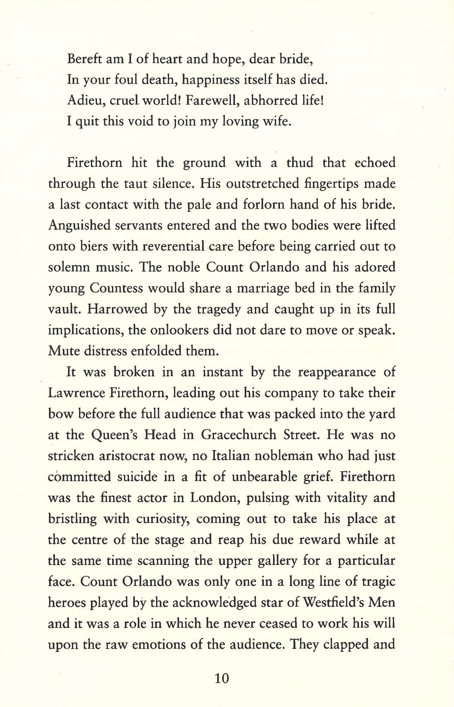 The fiery star of the company of players called Lord Westfield's Men, Laurence Firethorn, is hot for a lady, wife of the Lord Mayor elect. A tryst at London's Nine Giants Inn is arranged. Meanwhile, the lugubrious landlord of the actors' home base is laid even lower by a plot to take over ownership of the inn. A young apprentice actor is subjected to a horrible assault and a waterman pulls a mangled corpse from the Thames. The drama comes to a climax at the annual Lord Mayor's show as his barge moves grandly down the river....