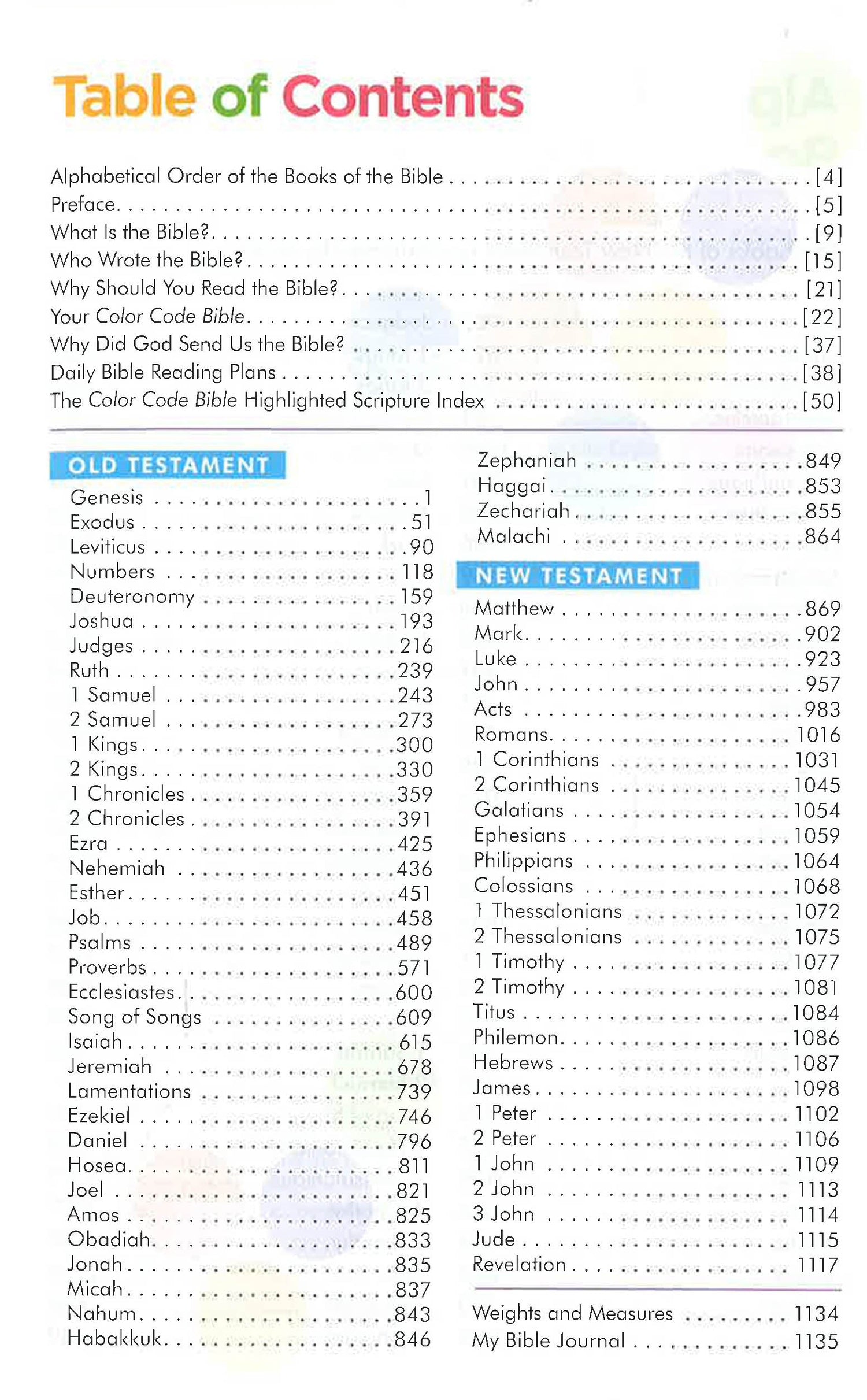 Full of bright colors, memorization aids, and the never-ending truth of God's Good News, the Color Code Bible is an exciting new way to study God's Word.