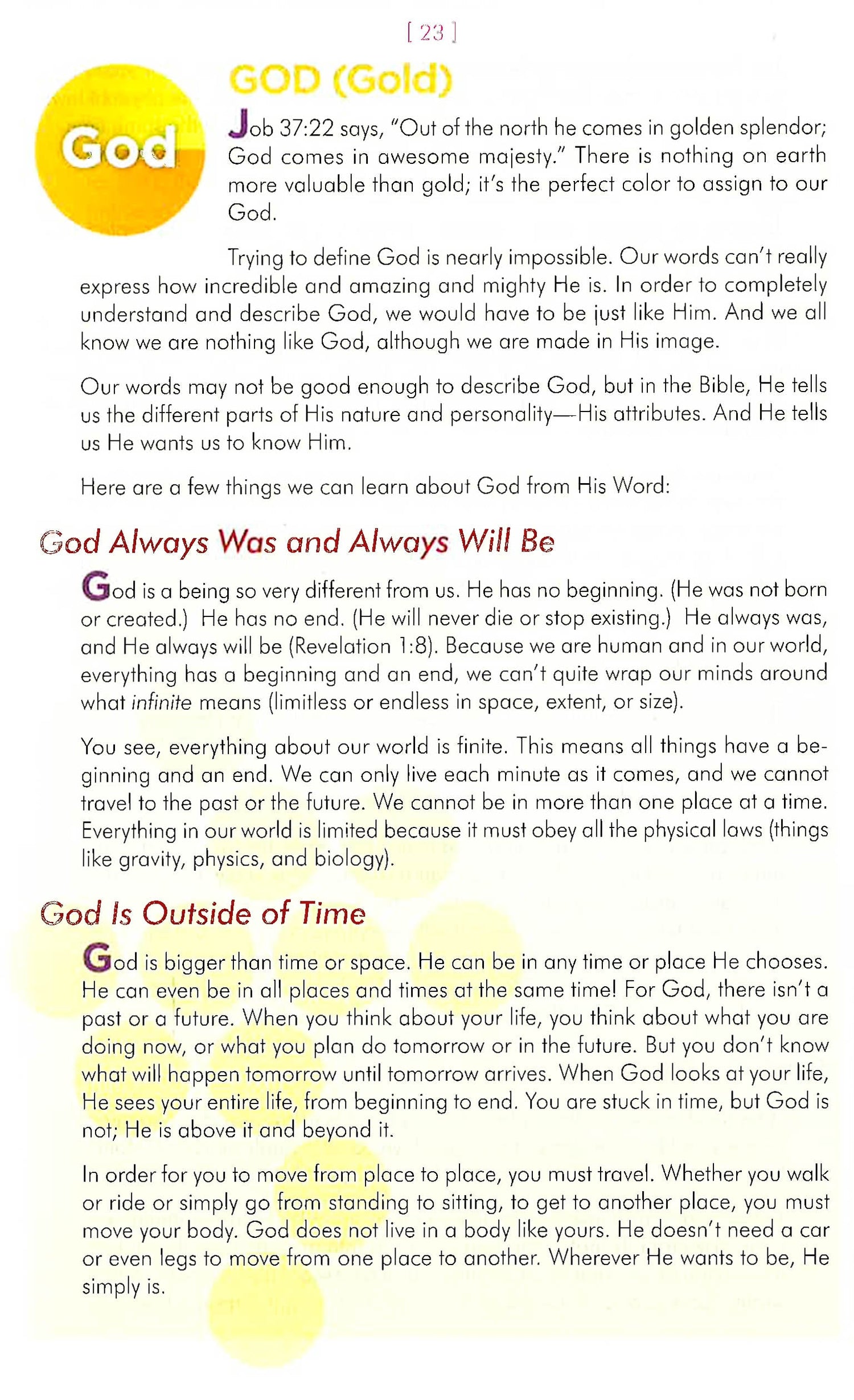 A vibrant 64 pages in the beginning of the Bible will explain the color system as well as offer expanded study help features especially for growing your child's solid faith.