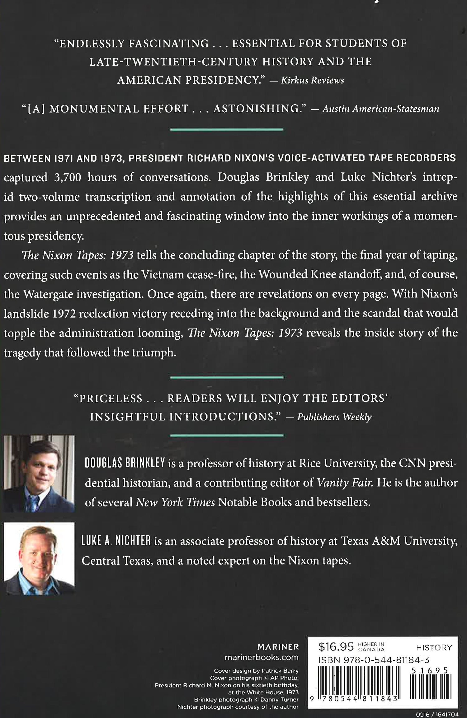 The Nixon Tapes: 1973 tells the concluding chapter of the story, the final year of taping, covering such events as the Vietnam cease-fire, the Wounded Knee standoff, and, of course, the Watergate investigation. Once again, there are revelations on every page. With Nixon's landslide 1972 reelection victory receding into the background and the scandal that would scuttle the administration looming, The Nixon Tapes: 1973 reveals the inside story of the tragedy that followed the triumph. "A priceless . . . historical document . . . Readers will enjoy the editors' insightful introductions." -- Publishers Weekly