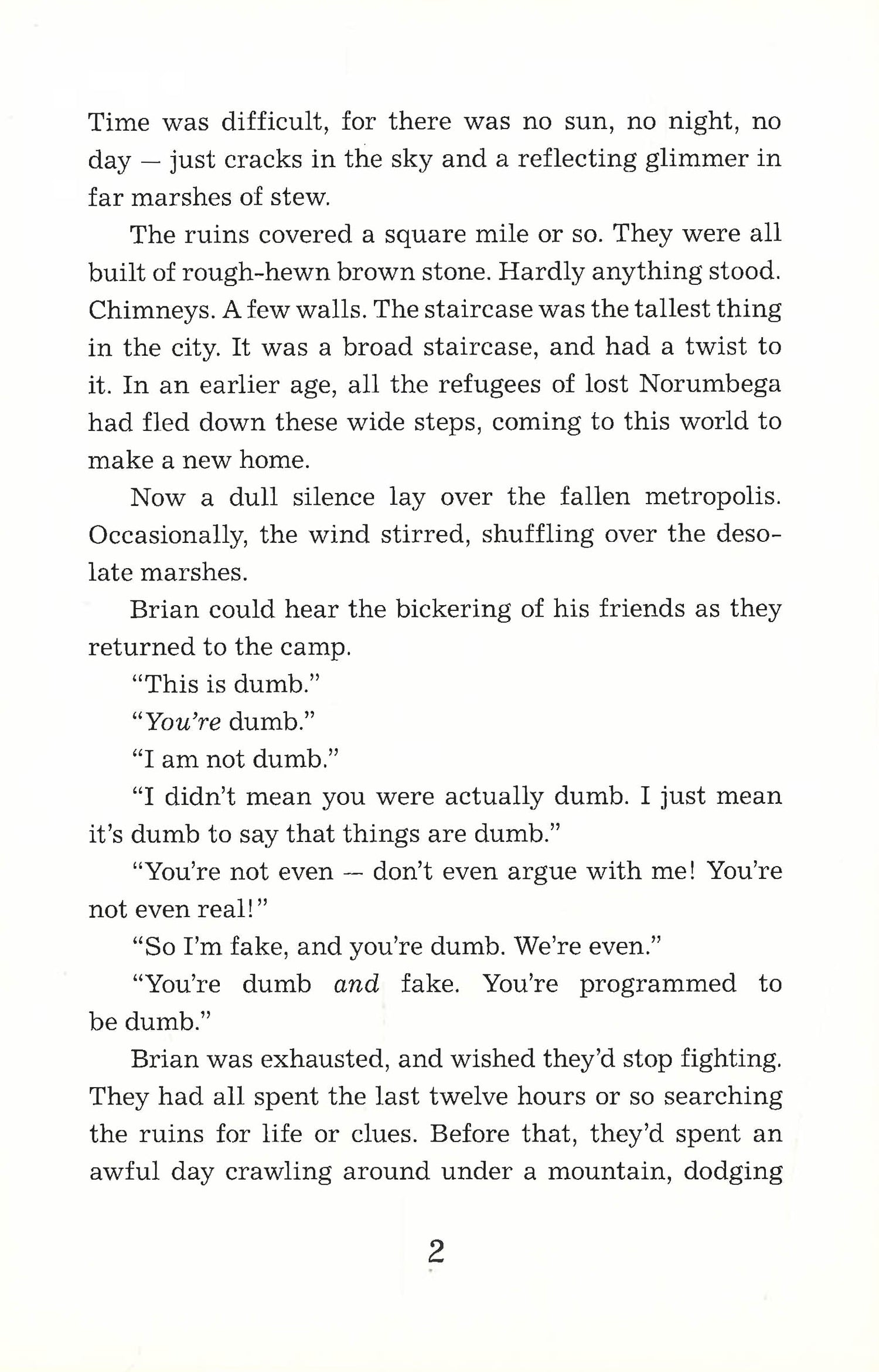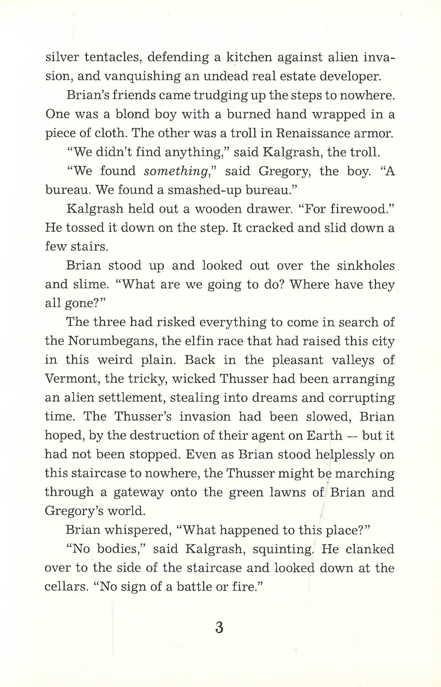 Brian and Gregory have come to New Norumbega for a reason--to get the Norumbegans to help them thwart an alien attack back home on earth. But instead, the two boys find themselves caught up in both a robot rebellion and a murder mystery after one of the Norumbegan leaders is sent to sleep . . . permanently.