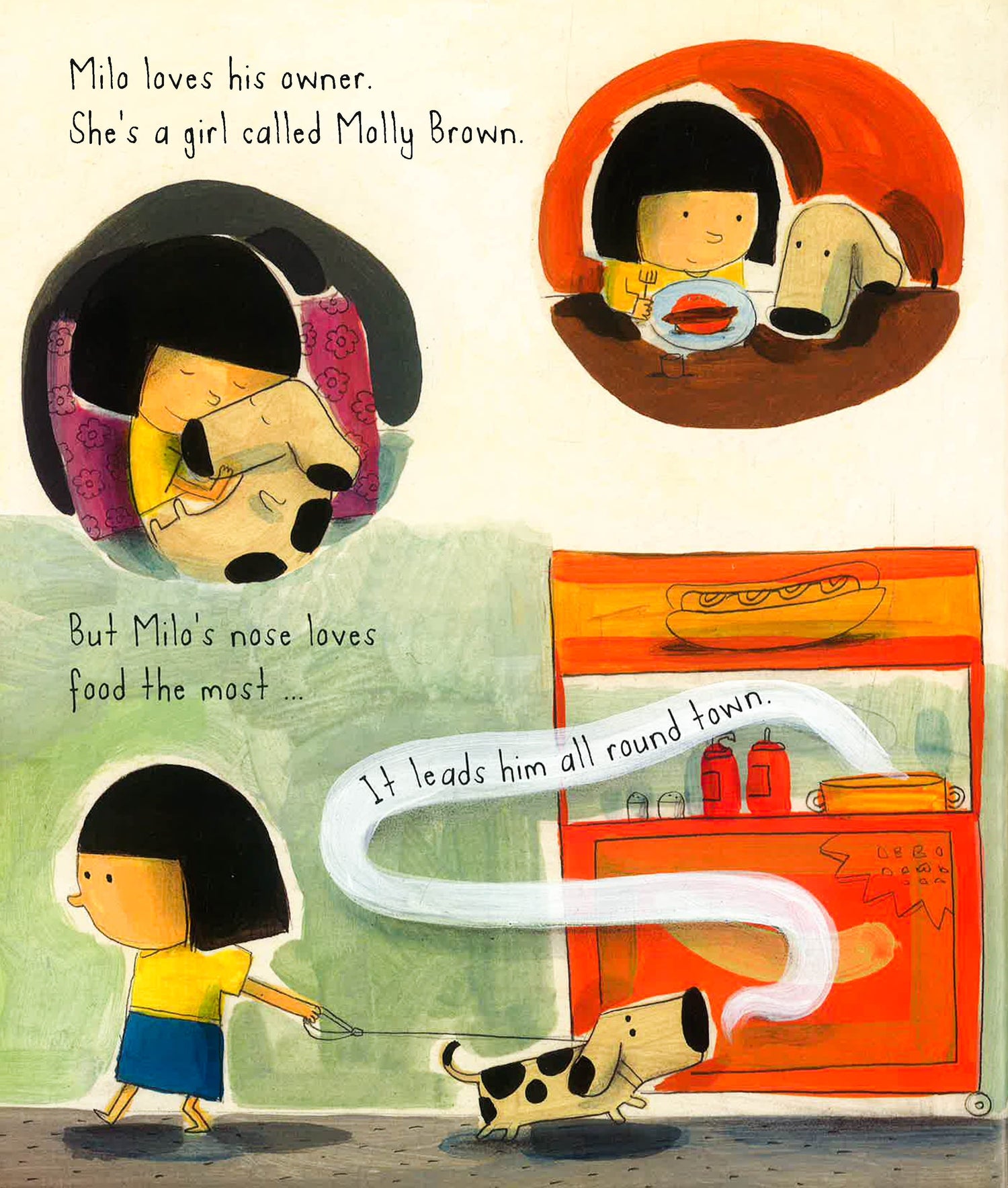 When Milo's knowing nose finds a scent it likes, nothing will stop it. Nose to the ground, Milo is led anywhere and everywhere- out the door, through the park, up a skyscraper, and even to outer space! But will Milo's nose ever lead him home? Follow Milo the dog as he follows his NOSE in this funny yet sweet rhyme illustrated by artist Barroux.