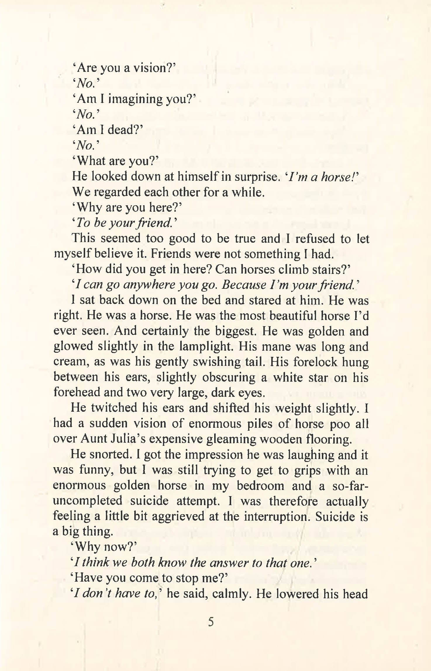 Nobody ever notices little Jenny Dove. Even her family call her the Nothing Girl. Isolated and alone, Jenny is about to end it all when she is rescued by Thomas, a giant golden horse only she can see.