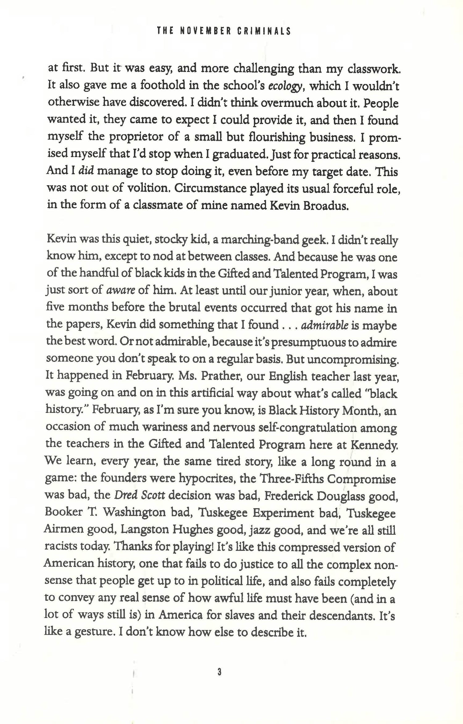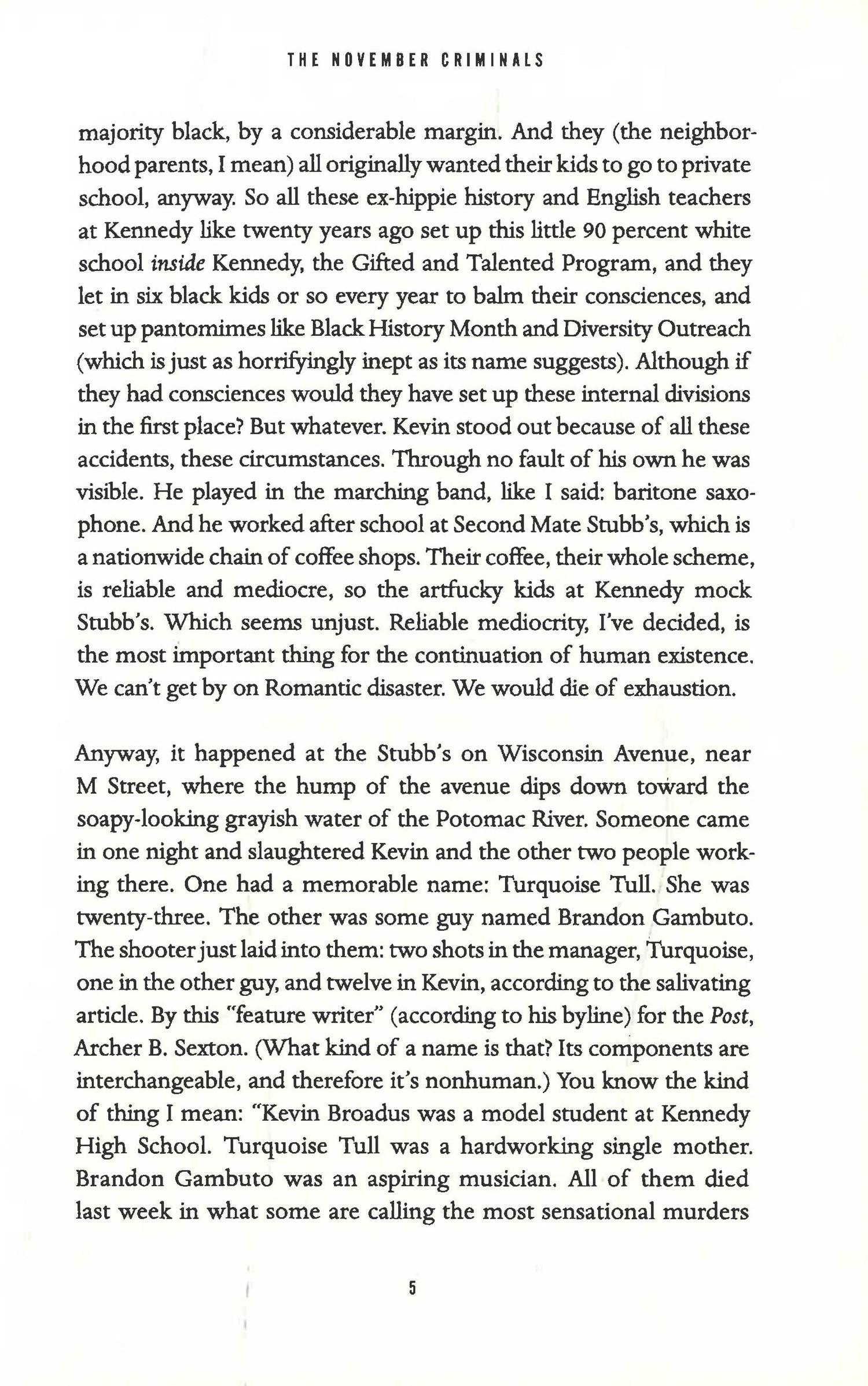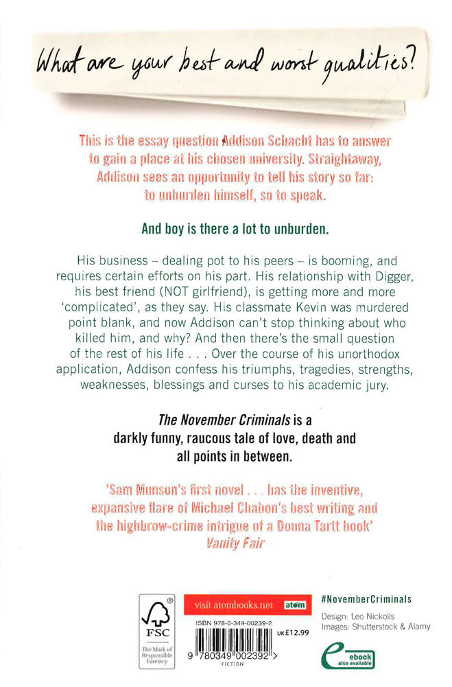 The November Criminals is the darkest, most raucous and unconventional love story/murder mystery/ coming-of-age crossover you will read this year.