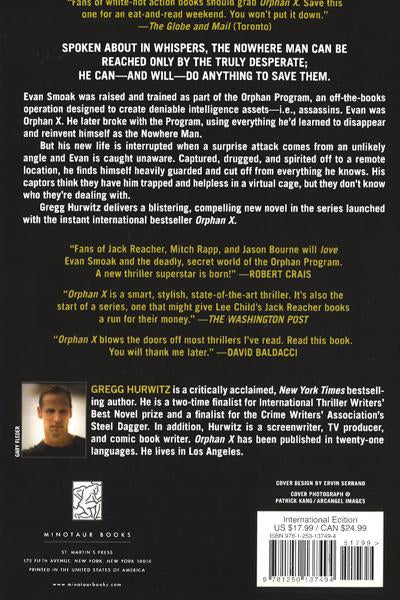 Evan Smoak was raised and trained as part of the Orphan Program, an off-the-books operation designed to create deniable intelligence assets - i.e. assassins. Evan was Orphan X. He later broke with the Program, using everything he'd learned to disappear and reinvent himself as the Nowhere Man.But his new life is interrupted when a surprise attack comes from an unlikely angle and Evan is caught unaware. Captured, drugged, and spirited off to a remote location, he finds himself heavily guarded and cut off from everything he knows. His captors think they have him trapped and helpless in a virtual cage, but they don't know who they're dealing with.
