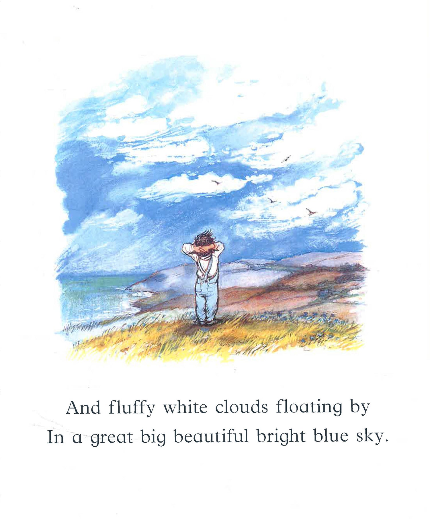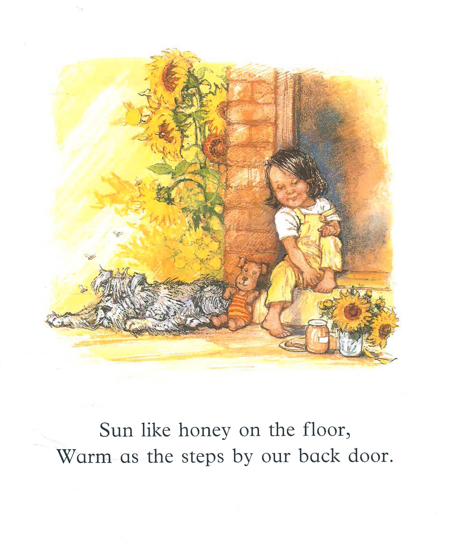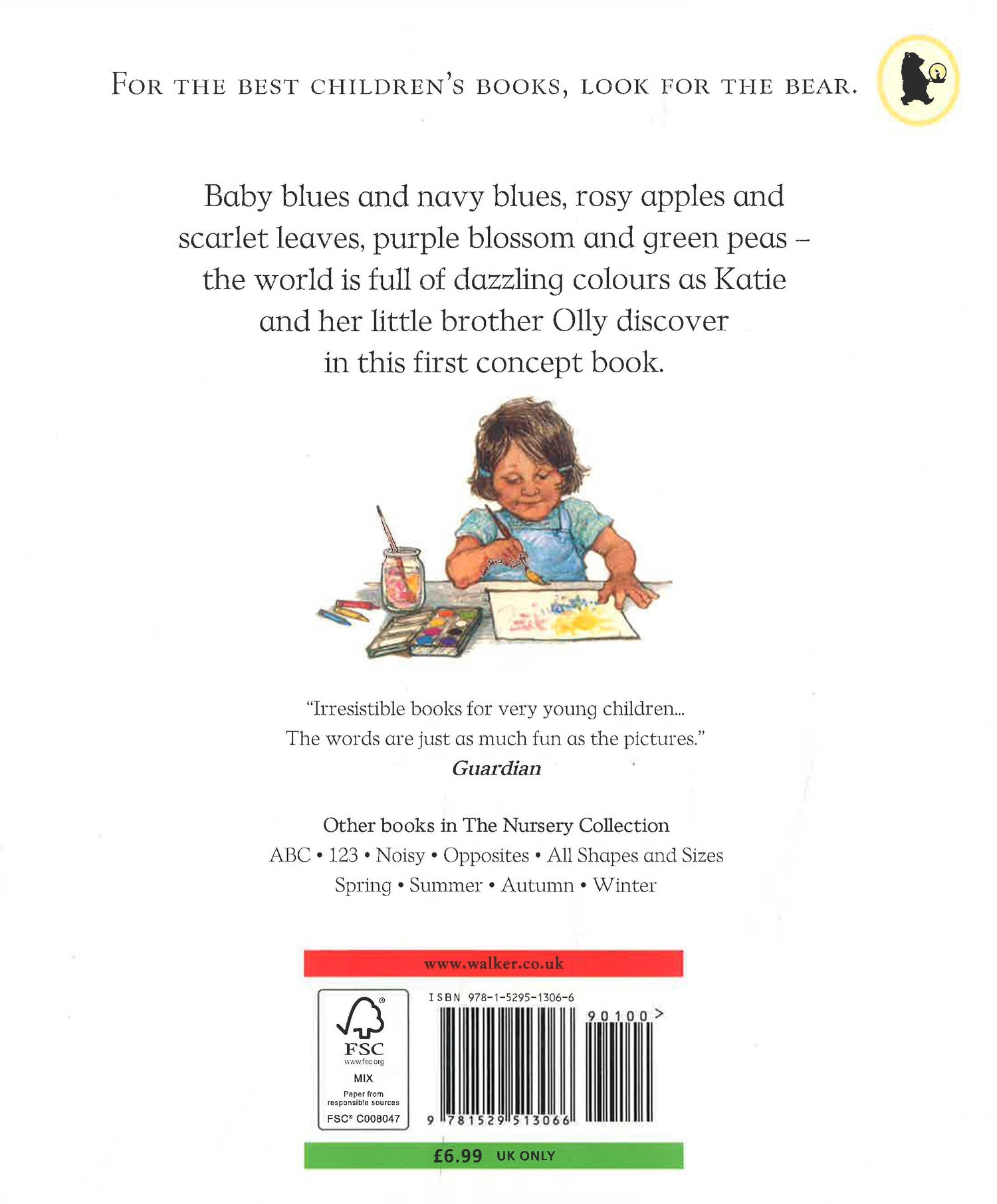 Baby blues and navy blues, rosy apples and scarlet leaves, purple blossom and green peas. The world is full of dazzling colours as Katie and her little brother Olly discover in this first concept book.