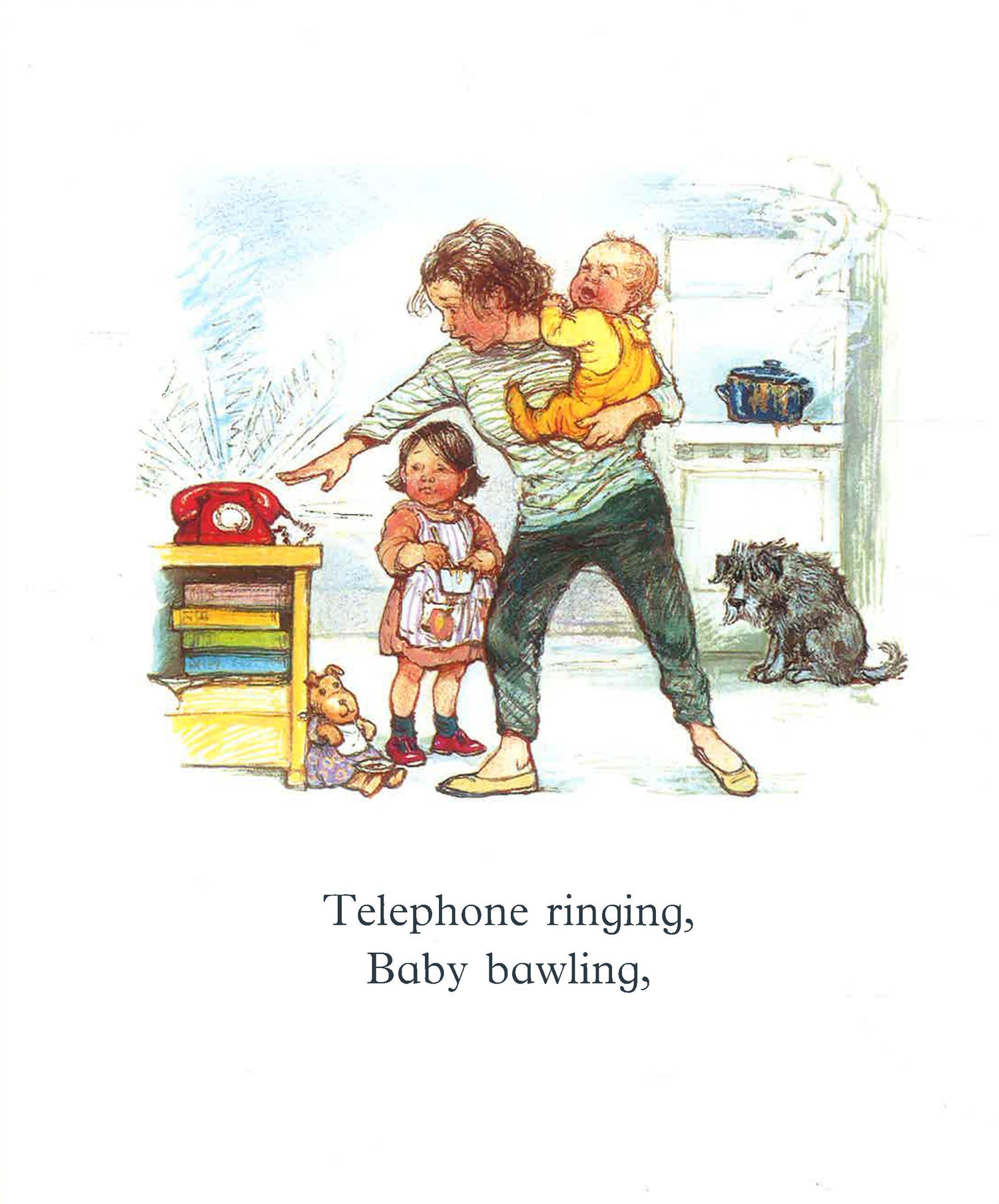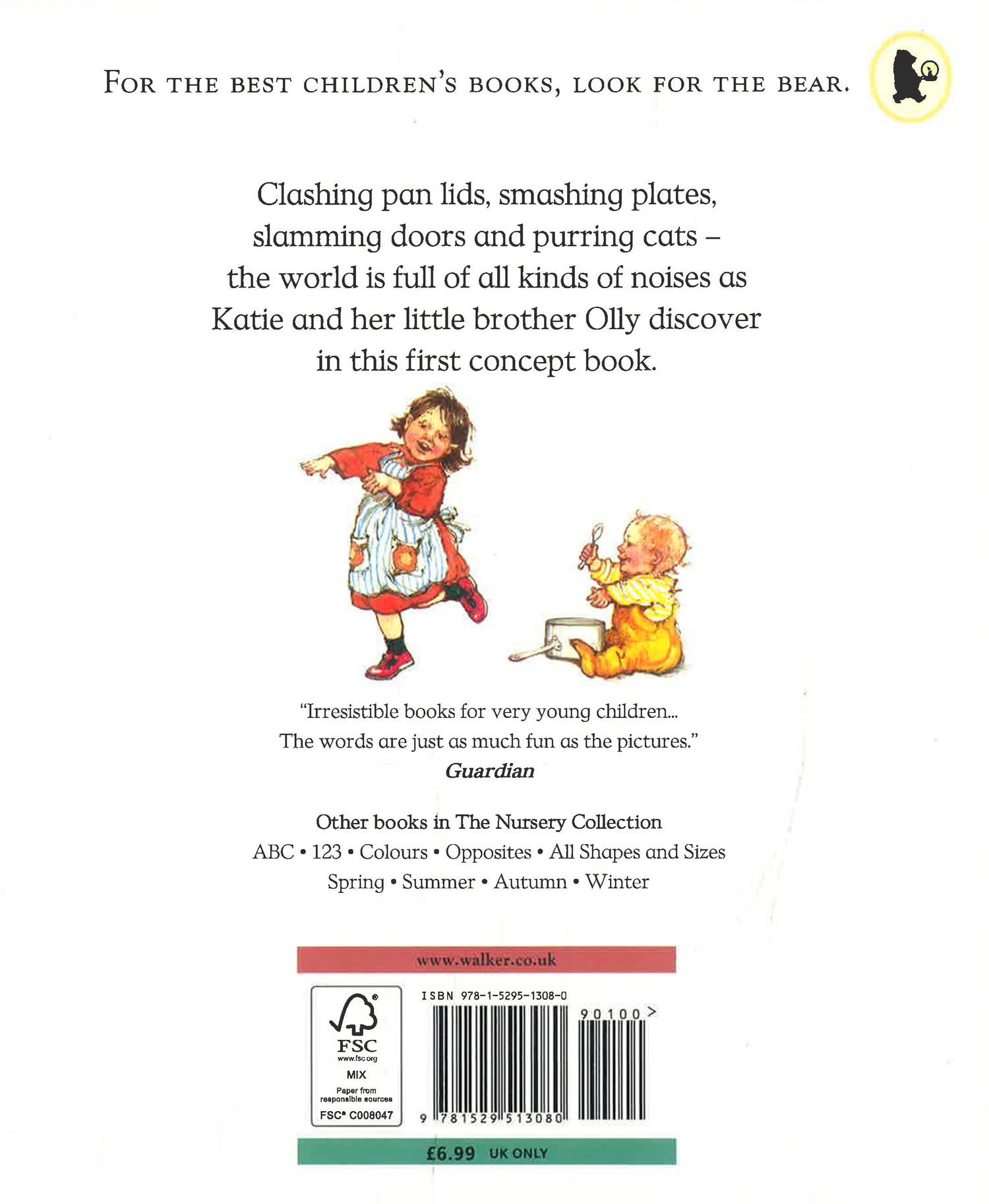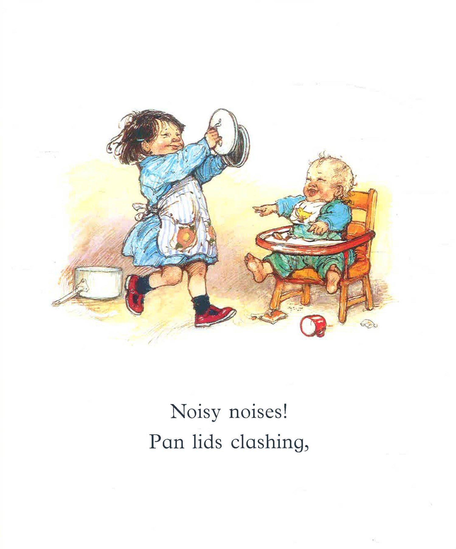 A nursery picture book, featuring a lively toddler and her baby brother. It is designed to introduce the concept of sound to young children.