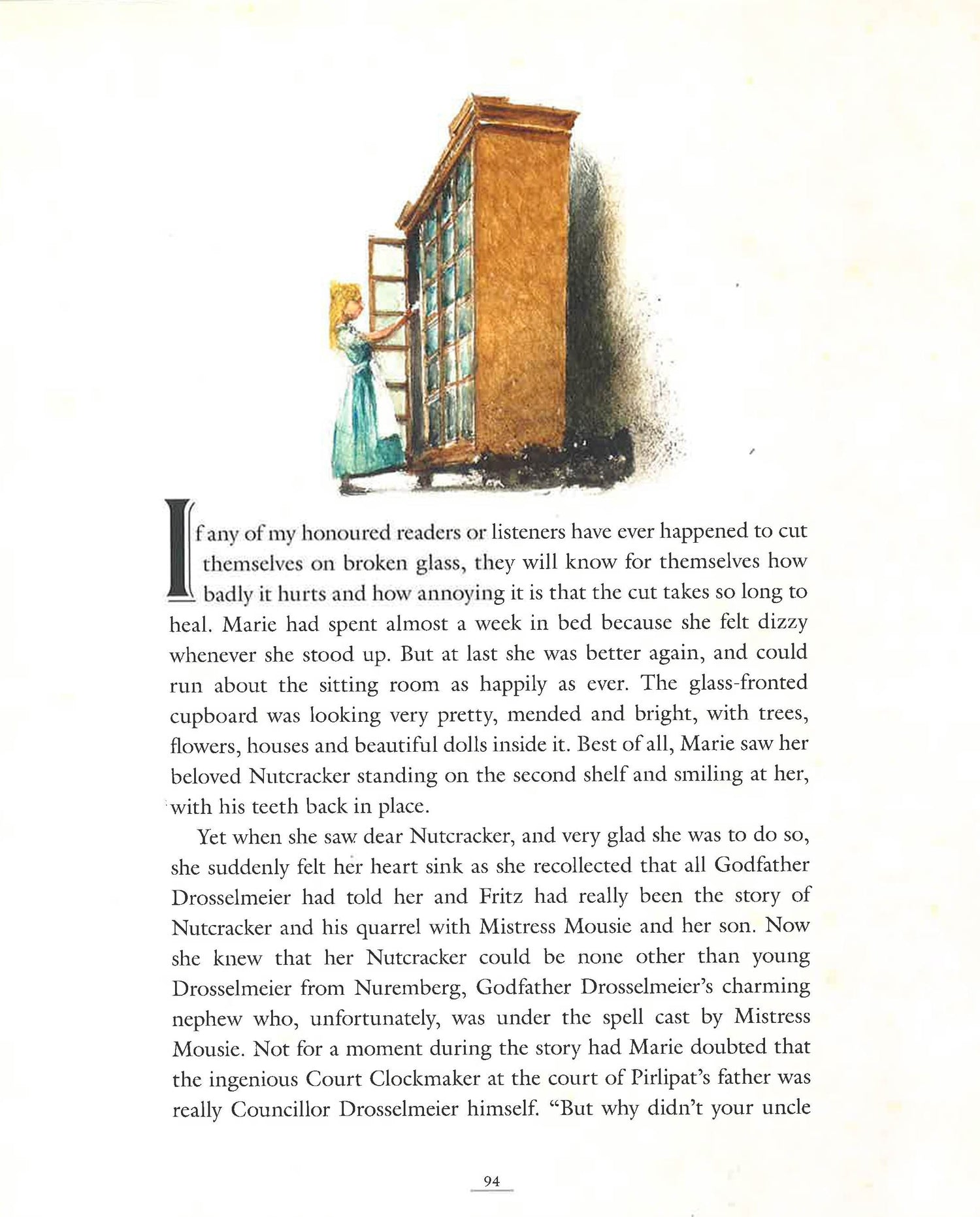 It's Christmas eve and Marie and her family are enjoying the seasonal festivities. Drosselmeyer, the clockmaker and inventor, presents them with a nutcracker which Marie becomes very taken with. At the stroke of twelve that night the nutcracker comes alive before Marie's very eyes, and so begins the most wonderful adventure... Join Marie and her dear nutcracker on a journey through the mystical land of the Mouse King and Princess Pirlipat, with themes of magic, love, betrayal and redemption, beautifully captured by Robet Ingpen's exquisite illustrations.
