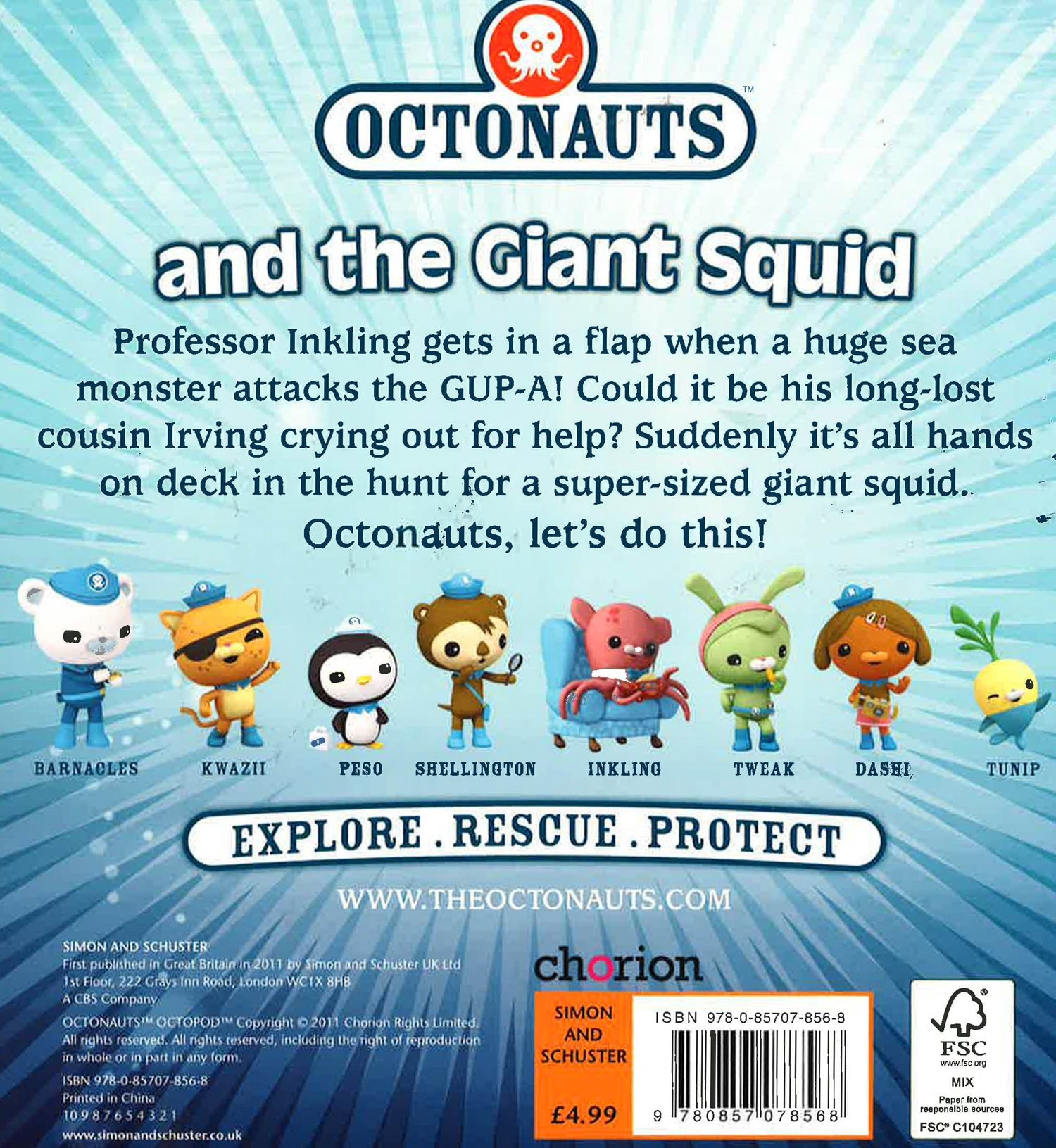 The Octonauts follows a team of adventure heroes who dive right into action whenever there is trouble under the sea. In a fleet of amazing aquatic vehicles, the Octonauts explore incredible new underwater worlds, rescue wonderful sea creatures, and often save the day before returning safely home to the Octopod. Under the leadership of Captain Barnacles Bear, closely flanked by Lieutenant Kwazii Cat and Medic Peso Penguin, the Octonauts are always ready to embark on an exciting new mission! The Octonauts and the Giant Squid When a huge sea monster attacks the GUP-A, Professor Inkling wades in. He thinks the monster is his long-lost cousin Irving crying out for help! Now it's all hands on deck in the hunt for the super-sized giant squid. Octonauts, let's do this!