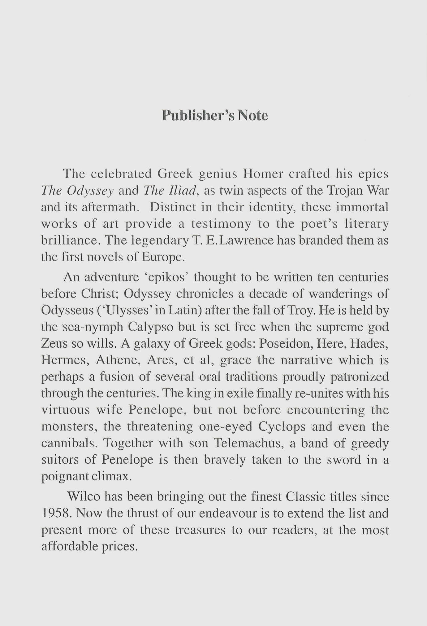 Muse, tell me of a man: a man of much resource, who was made to wander far and long, after he had sacked the sacred city of Troy. Many were the men whose lands he saw and came to know their thinking: many too the miseries at sea, which he suffered in his heart, as he sought to win his own life and the safety of his companions.' Recounting the epic journey home of Odysseus from the Trojan War, The Odyssey - alongside its sister poem The Iliad - stands as the well-spring of Western Civilisation and culture, an inspiration to poets, writers and thinkers for thousands of years since. This authoritative prose translation by Martin Hammond brings Homer's great poem of homecoming to life as Odysseus battles through such familiar dangers as the cave of the Cyclops, the call of the Sirens and his hostile reception back in his native land of Ithaca.
