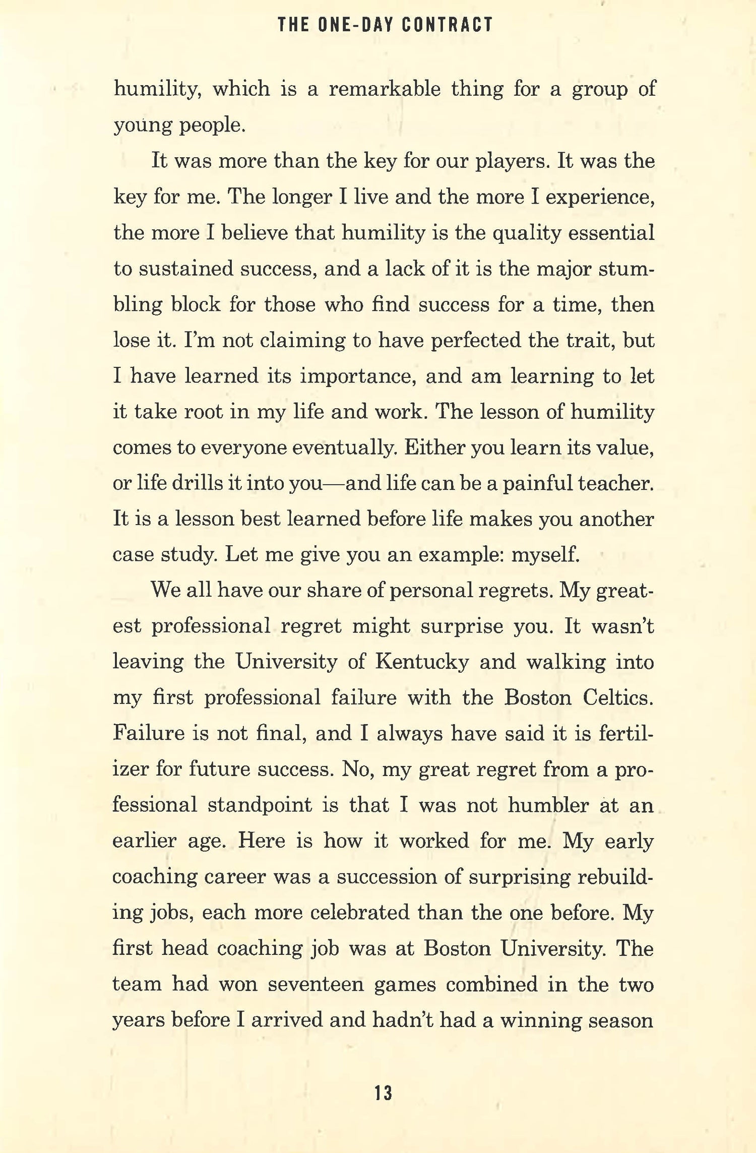 In this inspiring and practical guide, Coach Rick Pitino illustrates how to set your own one-day contract, and follow through to honor it for each day, each goal, and each interaction with another person. Pitino shows how to: