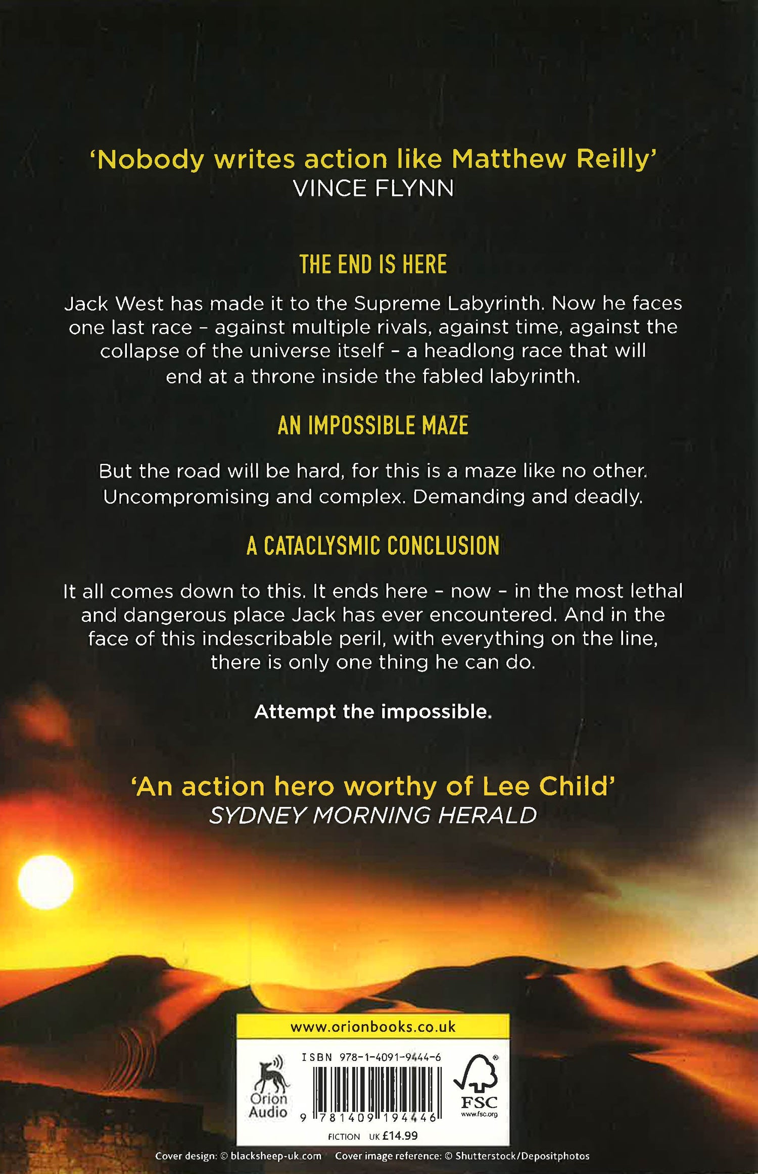 THE BRAND NEW JACK WEST THRILLER AND SUNDAY TIMES BESTSELLER 'Spectacular...Part-Jack Reacher, part-Indiana Jones' SMH THE END IS HERE Jack West Jr has made it to the Supreme Labyrinth. Now he faces one last race - against multiple rivals, against time, against the collapse of the universe itself - a headlong race that will end at a throne inside the fabled labyrinth. AN IMPOSSIBLE MAZE But the road will be hard. For this is a maze like no other: a maze of mazes. Uncompromising and complex. Demanding and deadly. A CATACLYSMIC CONCLUSION It all comes down to this. It ends here - now - in the most lethal and dangerous place Jack has encountered in all of his many adventures. And in the face of this indescribable peril, with everything on the line, there is only one thing he can do. Attempt the impossible. * * * * * PRAISE FOR THE JACK WEST THRILLERS 'An action hero worthy of Lee Child' Sydney Morning Herald 'Thrilling, action-packed adventure from cover to cover' Guardian 'Nobody writes action like Matthew Reilly' Vince Flynn 'Get ready for a wild ride' Daily Telegraph 'Exciting and entertaining' Chicago Sun-Times * * * * * READERS LOVE THE JACK WEST THRILLERS 'Indiana Jones in a book . . . Immensely entertaining' 'A super duper kick ass soldier' 'A first class all-action historical thriller' 'Heart-pounding stuff' 'Enjoy the rollercoaster ride'