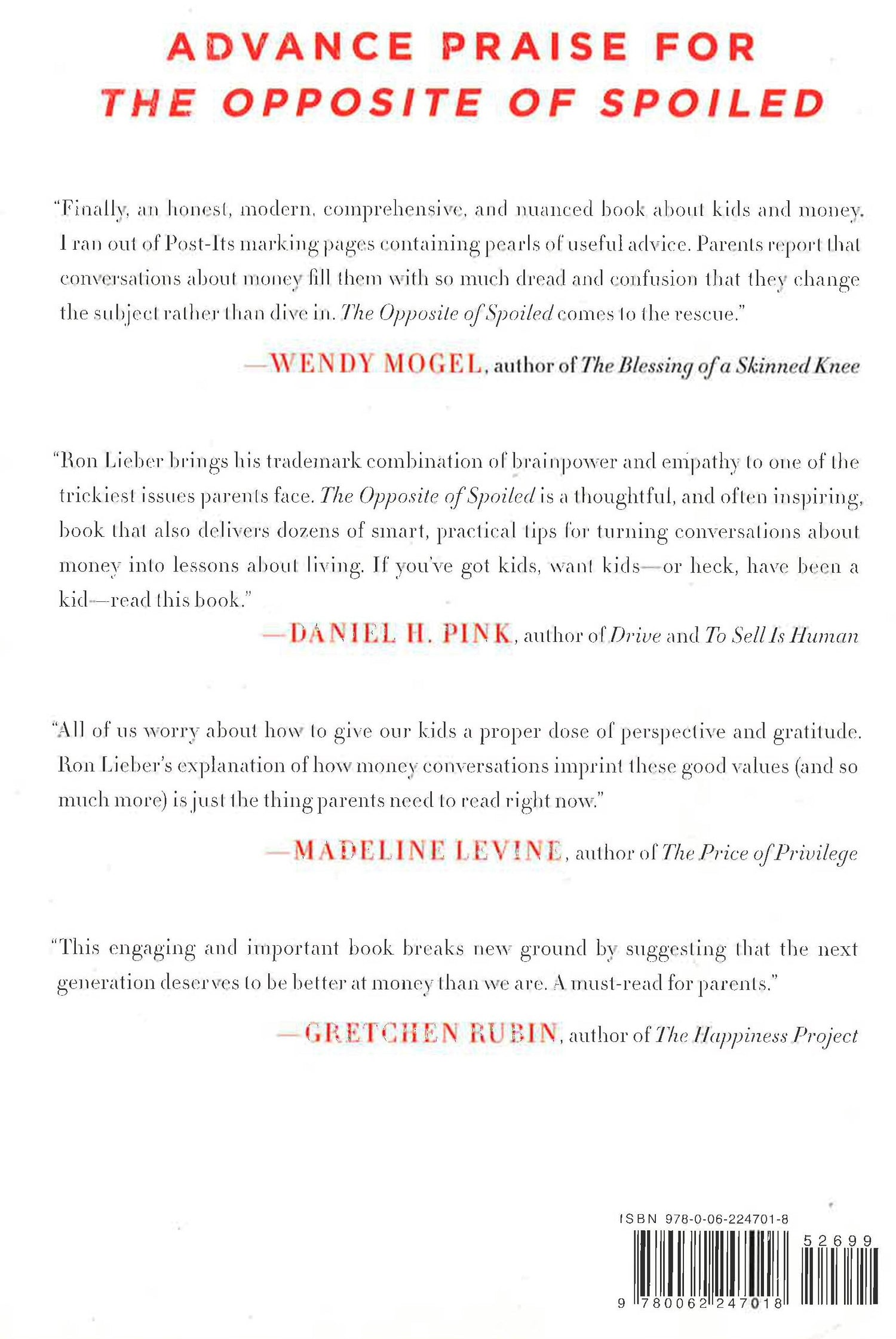 In the spirit of Wendy Mogel's The Blessing of a Skinned Knee and Po Bronson and Ashley Merryman's Nurture Shock, New York Times "Your Money" columnist Ron Lieber delivers a taboo-shattering manifesto that explains how talking openly to children about money can help parents raise modest, patient, grounded young adults who are financially wise beyond their years. For Ron Lieber, a personal finance columnist and father, good parenting means talking about money with our kids. Children are hyper-aware of money, and they have scores of questions about its nuances. But when parents shy away from the topic, they lose a tremendous opportunity-not just to model the basic financial behaviors that are increasingly important for young adults but also to imprint lessons about what the family truly values. Written in a warm, accessible voice, grounded in real-world experience and stories from families with a range of incomes, The Opposite of Spoiled is both a practical guidebook and a values-based philosophy. The foundation of the book is a detailed blueprint for the best ways to handle the basics: the tooth fairy, allowance, chores, charity, saving, birthdays, holidays, cell phones, checking accounts, clothing, cars, part-time jobs, and college tuition. It identifies a set of traits and virtues that embody the opposite of spoiled, and shares how to embrace the topic of money to help parents raise kids who are more generous and less materialistic. But The Opposite of Spoiled is also a promise to our kids that we will make them better with money than we are. It is for all of the parents who know that honest conversations about money with their curious children can help them become more patient and prudent, but who don't know how and when to start.