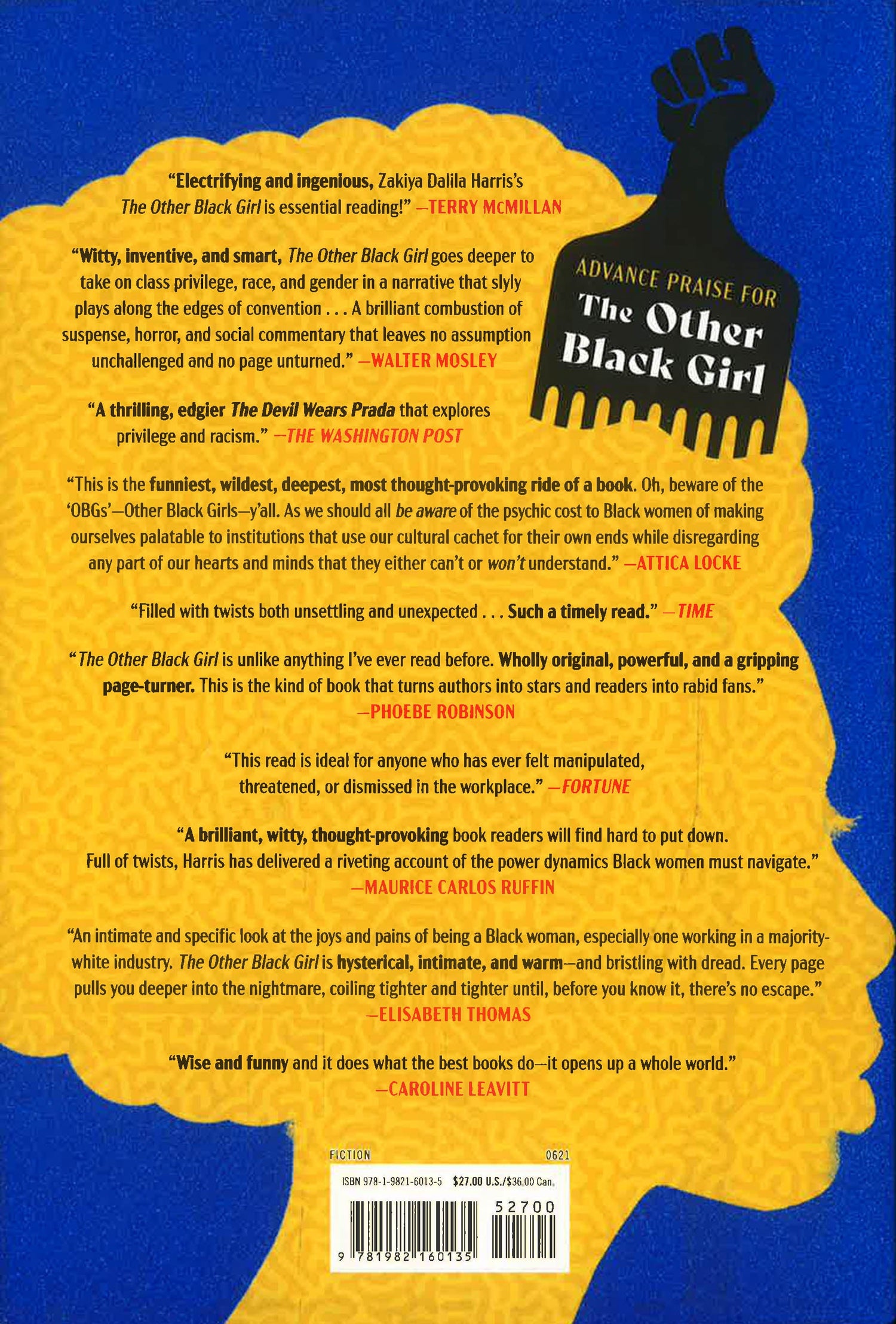 A whip-smart and dynamic thriller and sly social commentary that is perfect for anyone who has ever felt manipulated, threatened, or overlooked in the workplace, The Other Black Girl will keep you on the edge of your seat until the very last twist.
