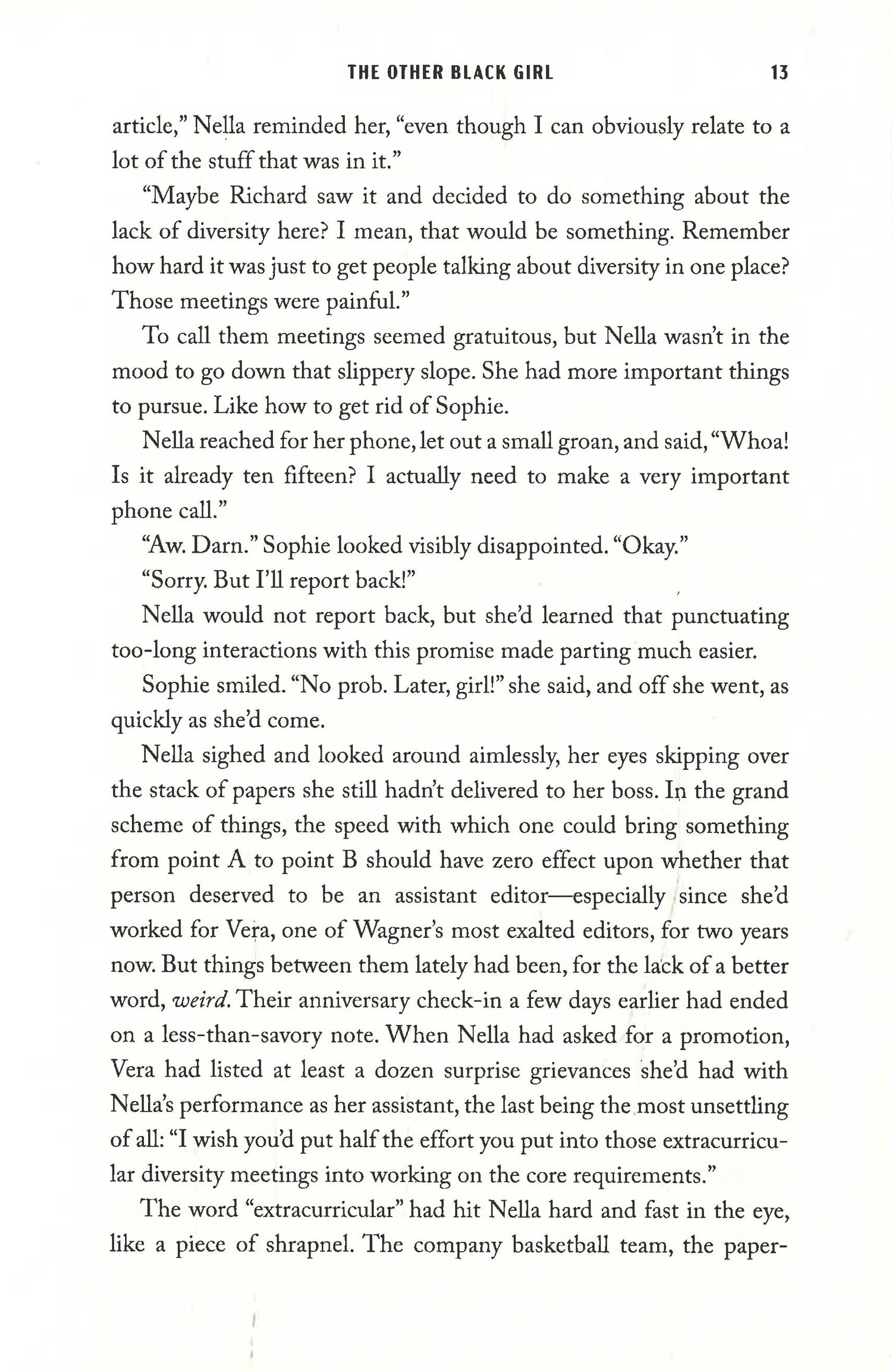 Twenty-six-year-old editorial assistant Nella Rogers is tired of being the only Black employee at Wagner Books. Fed up with the isolation and microaggressions, she’s thrilled when Harlem-born and bred Hazel starts working in the cubicle beside hers. They’ve only just started comparing natural hair care regimens, though, when a string of uncomfortable events elevates Hazel to Office Darling, and Nella is left in the dust.
