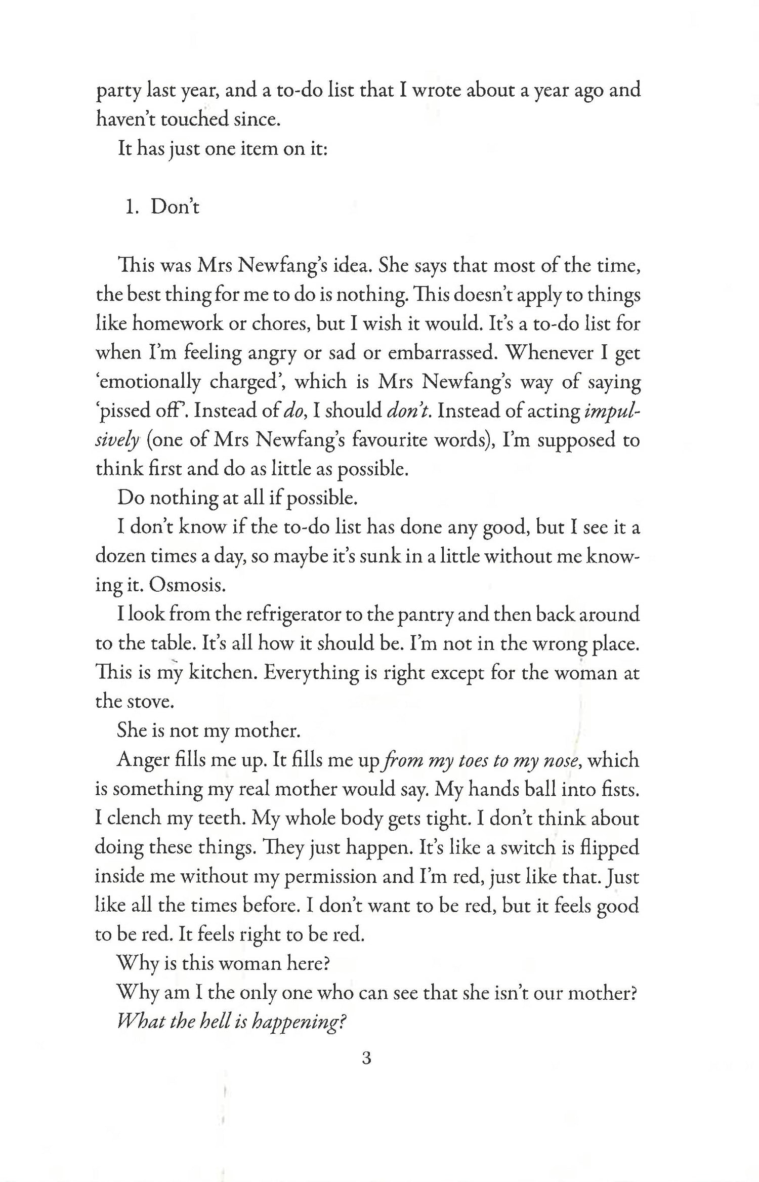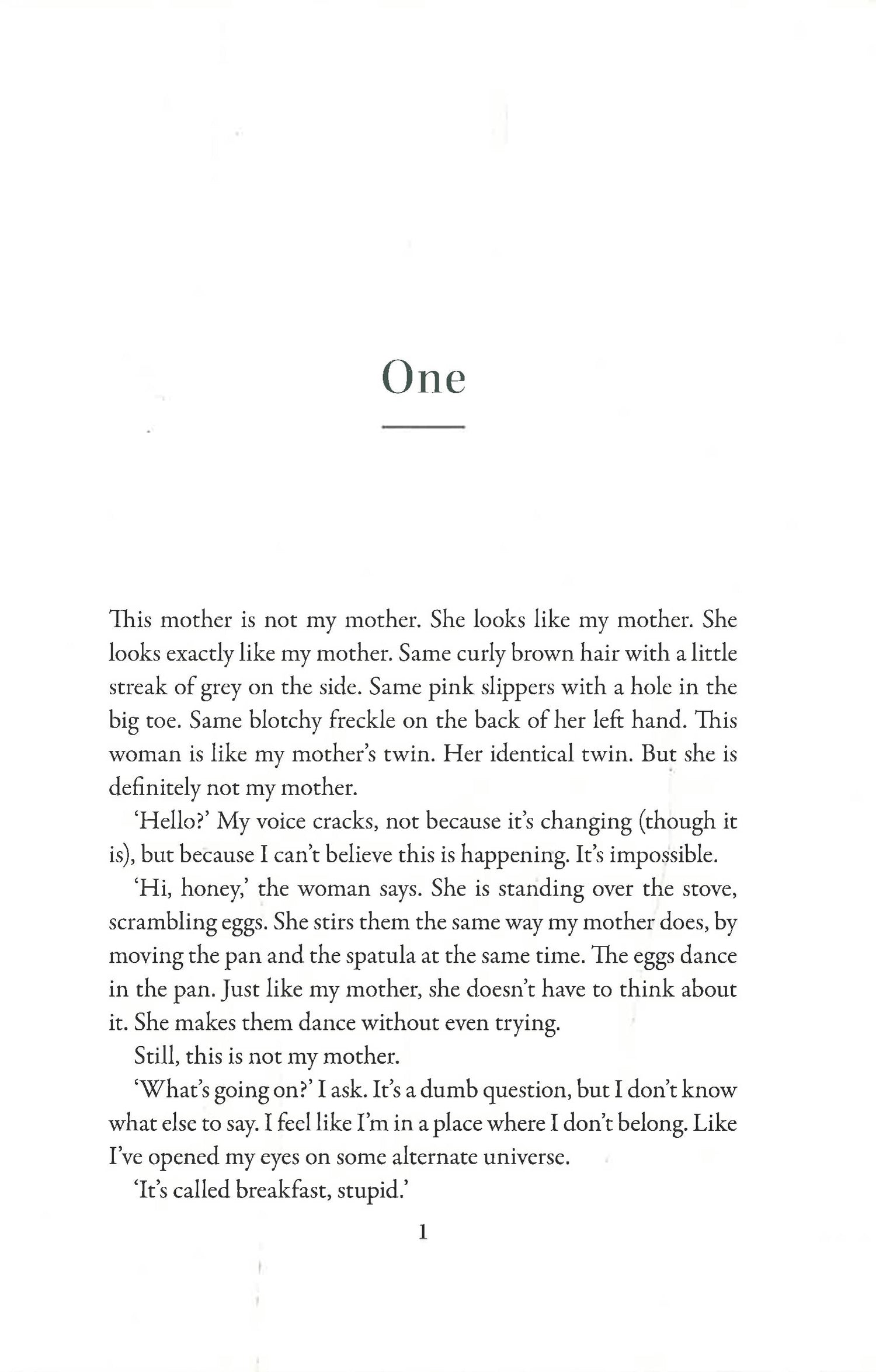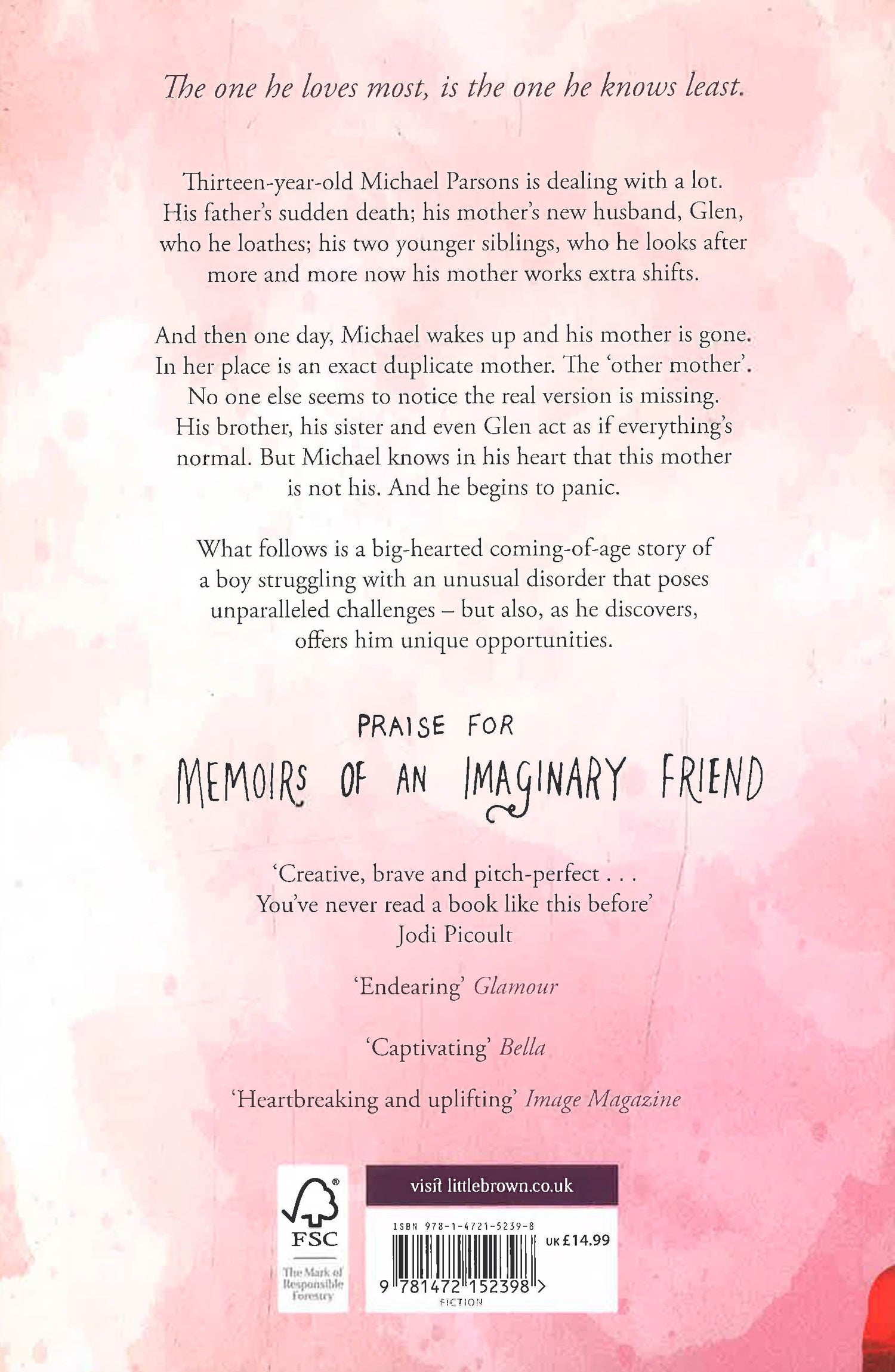 The one he loves most, is the one he knows leastThirteen-year-old Michael Parsons is dealing with a lot. His father's sudden death; his mother's new husband, Glen, who he loathes; his two younger siblings, who he looks after more and more now his mother works extra shifts.And then one day, Michael wakes up and his mother is gone. In her place is an exact, duplicate mother. The 'other mother'. No one else seems to notice the real version is missing. His brother, his sister and even Glen act as if everything's normal. But Michael knows in his heart that this mother is not his. And he begins to panic.What follows is a big-hearted coming-of-age story of a boy struggling with an unusual disorder that poses unparalleled challenges - but also, as he discovers, offers him unique opportunities.