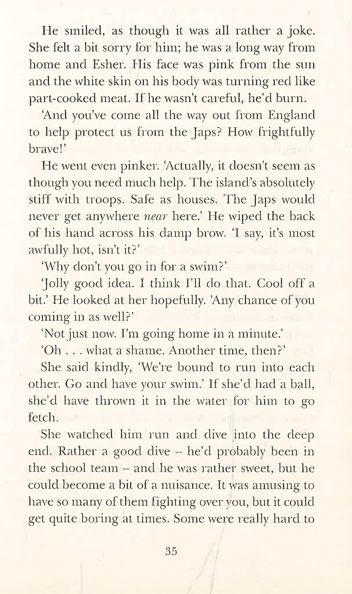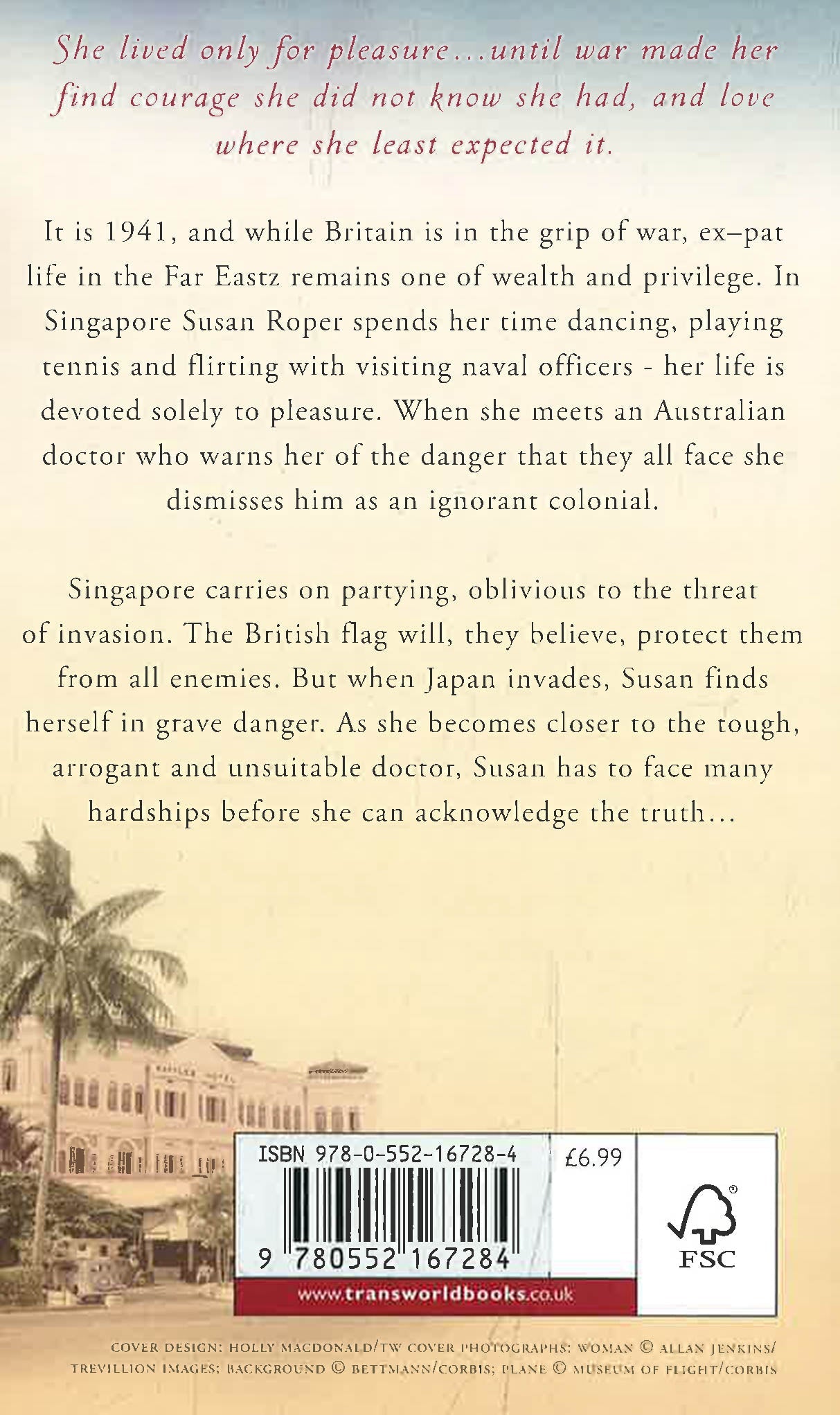 It is 1941, and while Britain is in the grip of war, ex-pat life in the Far East remains one of wealth and privilege. In Singapore Susan Roper spends her time dancing, playing tennis and flirting with visiting naval officers- her life is devoted solely to pleasure. When she meets an Australian doctor who warns her of the danger that they all face she dismisses him as an ignorant colonial.