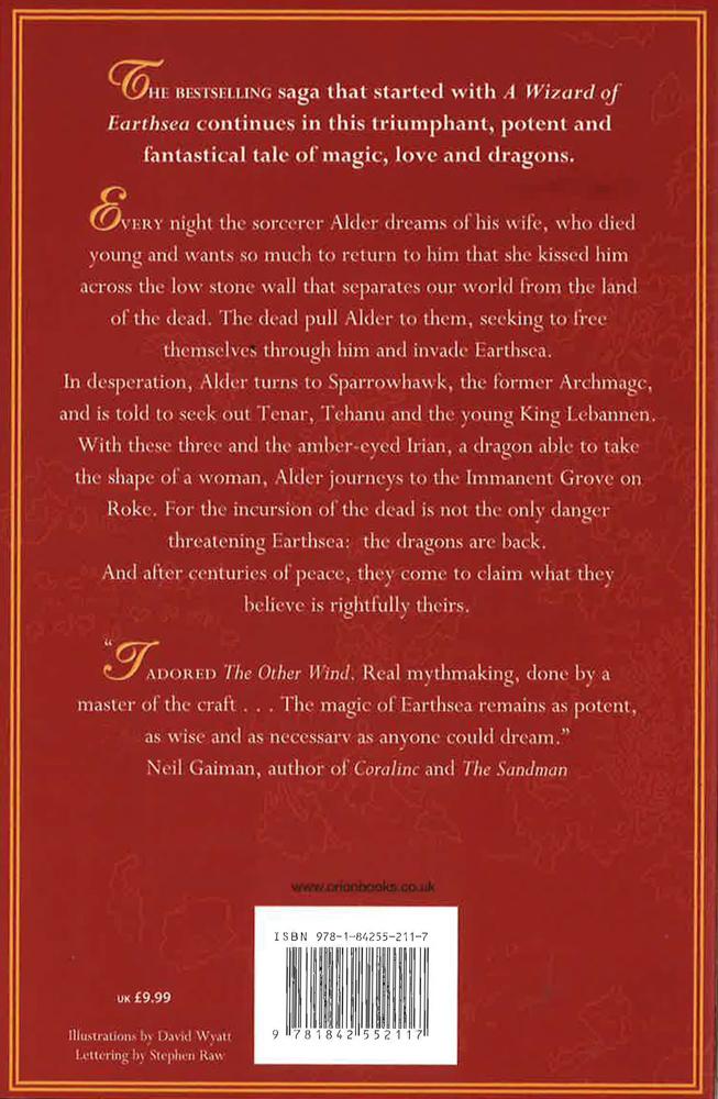 The wizard Alder comes from Roke to the island of Gont in search of the Archmage, Lord Sparrowhawk, once known as Ged. The man who was once the most powerful wizard in the Islands now lives with his wife Tenar and their adopted daughter Tehanu. Alder needs help: his beloved wife died and in his dreams she calls him to the land of the dead - and now the dead are haunting him, begging for release. He can no longer sleep, and the Wizards of Earthsea are worried. But there is more at stake than the unquiet rest of one minor wizard: for the dragons of Earthsea have arisen, to reclaim the lands that were once theirs. Only Tehanu, herself daughter of a dragon, can talk to them; it may be that Alder's dreams hold the key to the salvation of Earthsea and all the peoples who live there.