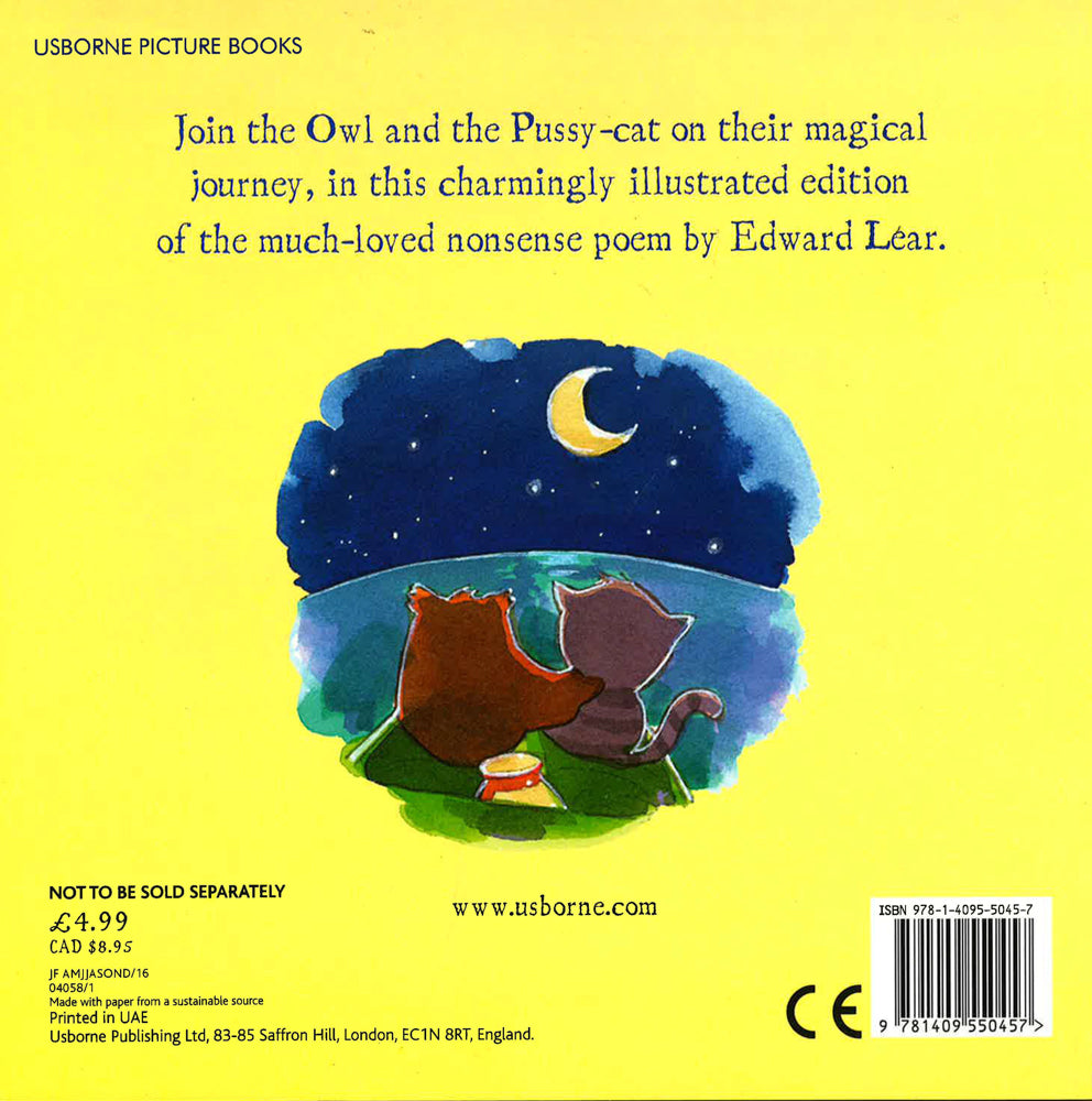 Join the Owl and the Pussy Cat on a magical adventure as they go to sea in a beautiful pea green boat. Edward Lear's much-loved nonsense rhyme is wonderfully brought to life by Victoria Ball's charming illustration.The much-loved nonsense poem by Edward Lear, brought to life with charming illustrations. The fun rhymes, silly adventures and vibrant pictures are sure to amuse and entertain young children. A wonderful book to share and enjoy together.