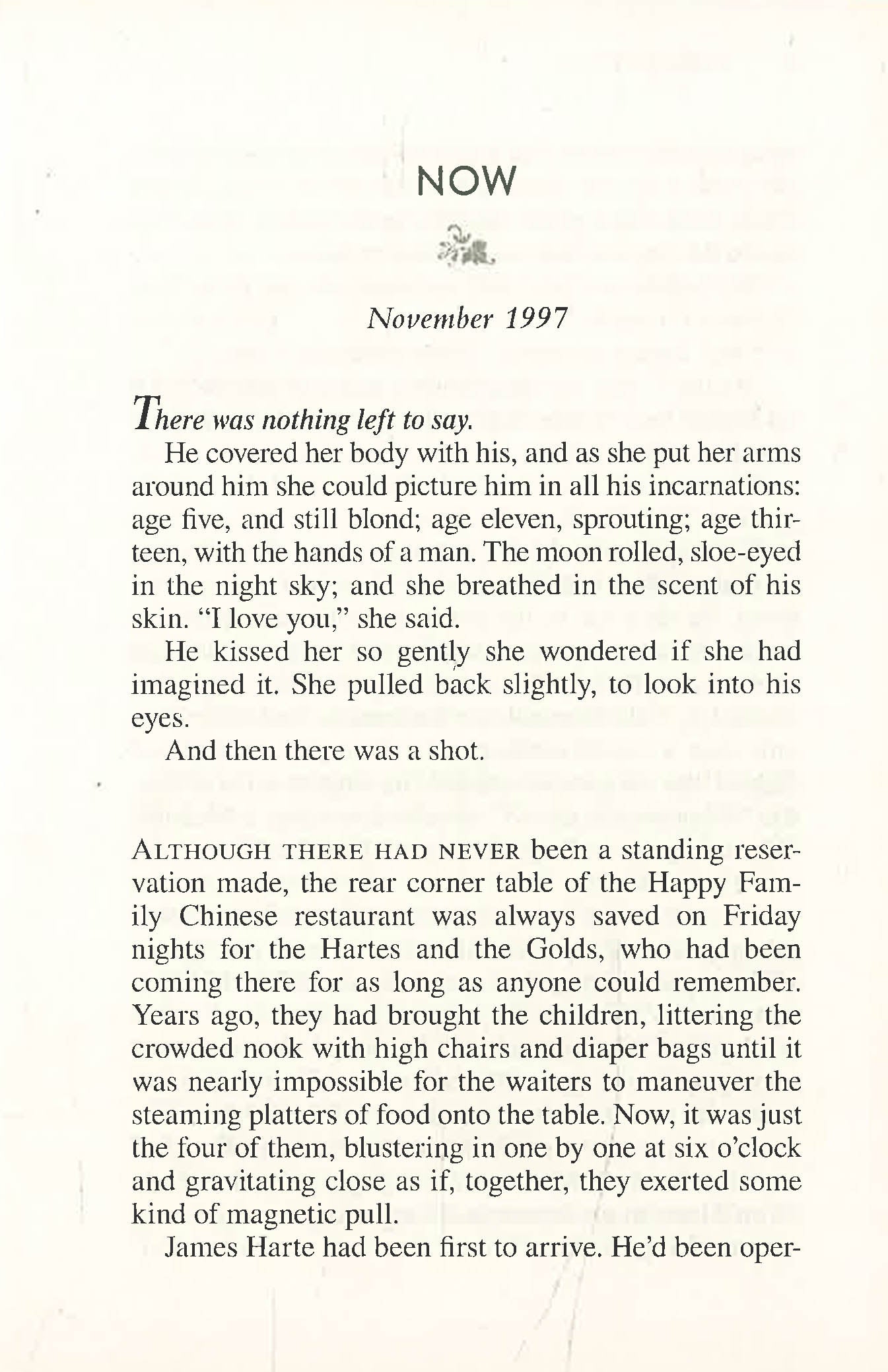 The Golds and the Hartes, neighbors for eighteen years, have always been inseparable. So have their children—and it’s no surprise that in high school Chris and Emily’s friendship blossoms into something more. But the bonds of family, friendship, and passion—which had seemed so indestructible—suddenly threaten to unravel in the wake of unimaginable tragedy.