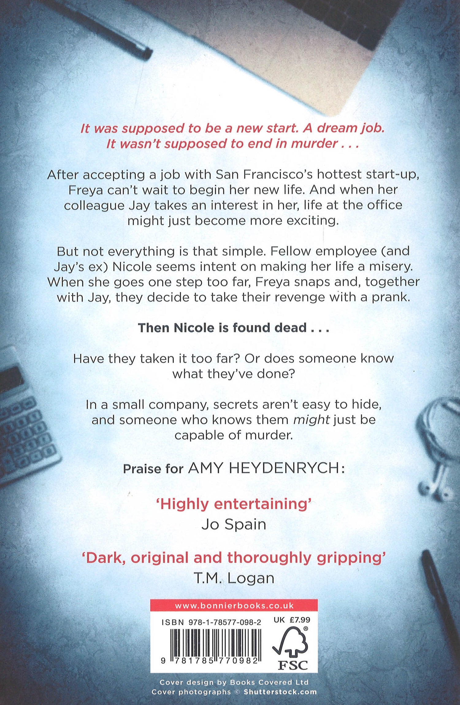 A gripping and chilling suspense novel about the deadly intentions of office life, for fans of Lesley Kara's The Rumour and Michelle Frances' The Temp. What if a prank leads to murder? When Freya arrives at her dream job with the city's hottest start-up, she can't wait to begin a new and exciting life, including dating her new colleague Jay. However, Nicole, Jay's ex and fellow employee, seems intent on making her life a misery. After a big deadline, where Nicole continually picks on her, Freya snaps and tells Jay about the bullying and together they concoct a revenge prank. The next morning, Nicole is found dead in her apartment . . . Is this just a prank gone wrong? Or does Freya know someone who is capable of murder - and could she be next?