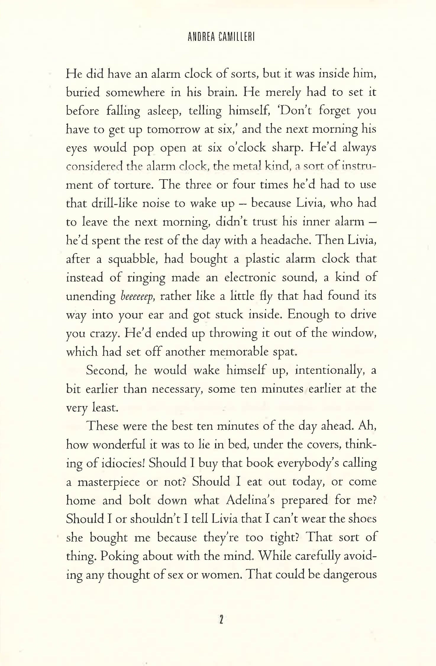 Motionless, Montalbano waited for the surf to enter his brain and wash it clean with each breaker. At last the first light wave came like a caress, swiiissshhh, and carried away, glugluglug, Elena Sclafani and her beauty, while Michela Pardo's tits, belly, arched body and eyes likewise disappeared. Once Montalbano the man was erased, all that should remain was Inspector Montalbano -- a kind of abstract function, the person who was supposed to solve the case and nothing more, with no personal feelings involved. But as he was telling himself this, he knew perfectly well that he could never pull it off. As he gets older, Inspector Montalbano is plagued by existential questions. But he doesn't have much time to wax philosophical before the gruesome murder of a man -- shot in the face at point-blank range with his pants down -- commands his attention. Add two evasive, beautiful women as prime suspects, dirty cocaine, dead politicians, mysterious computer codes, and a series of threatening letters, and things soon get very complicated at the police headquarters in Vigata. 'Wonderful Italian detective stories' Guardian 'A magnificent series of novels' Sunday Times