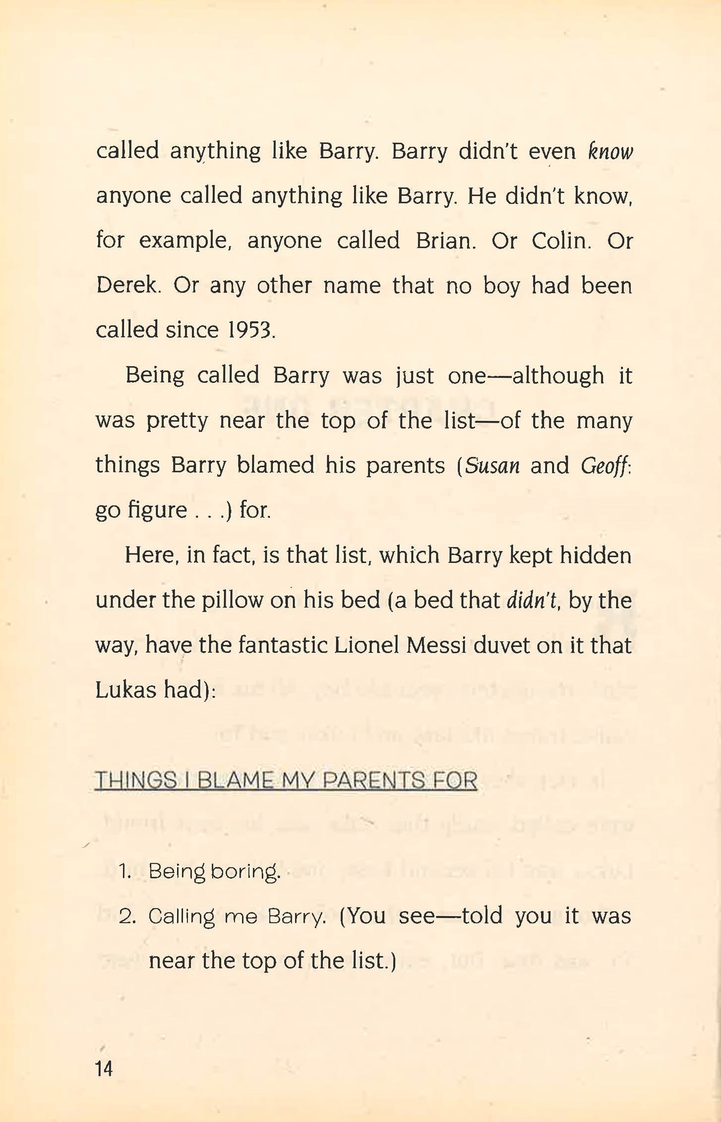 Barry Bennett is sick of his parents. They’re boring, they’re too strict, and it’s their fault his name is Barry. So he makes a wish for better ones - and is whisked away to the Parent Agency, where kids get to pick out their perfect parents.For Barry, this seems like a dream come true. But as he’s about to discover, choosing a new mom and dad isn’t as simple as it sounds . . .