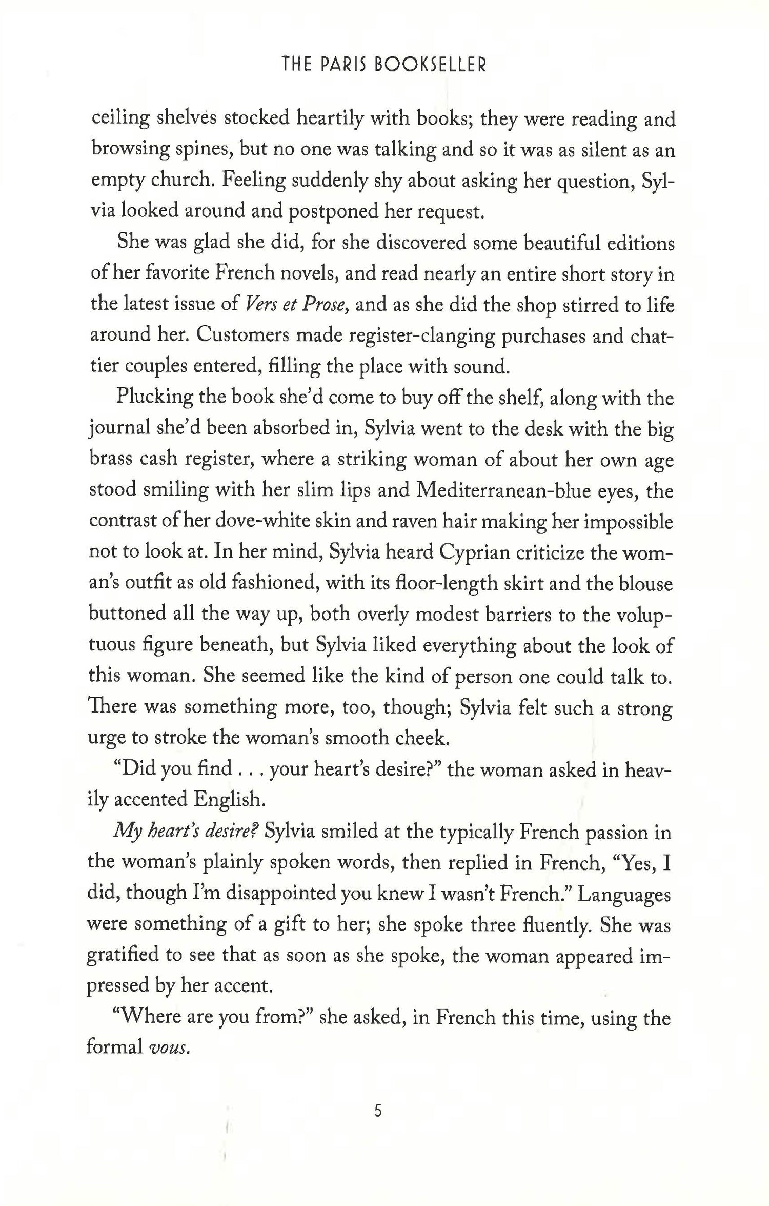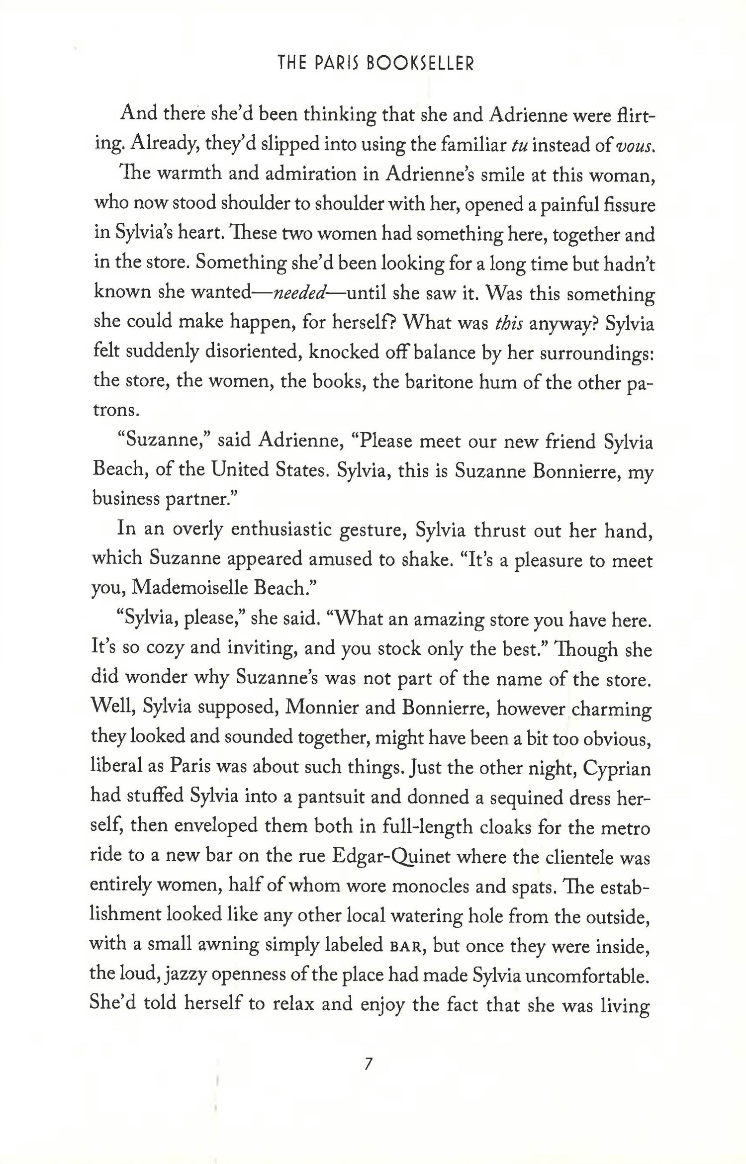 Young, bookish Sylvia Beach knows there is no greater city in the world than Paris. But when she opens an English-language bookshop on the bohemian Left Bank, Sylvia can't yet know she is making history.
