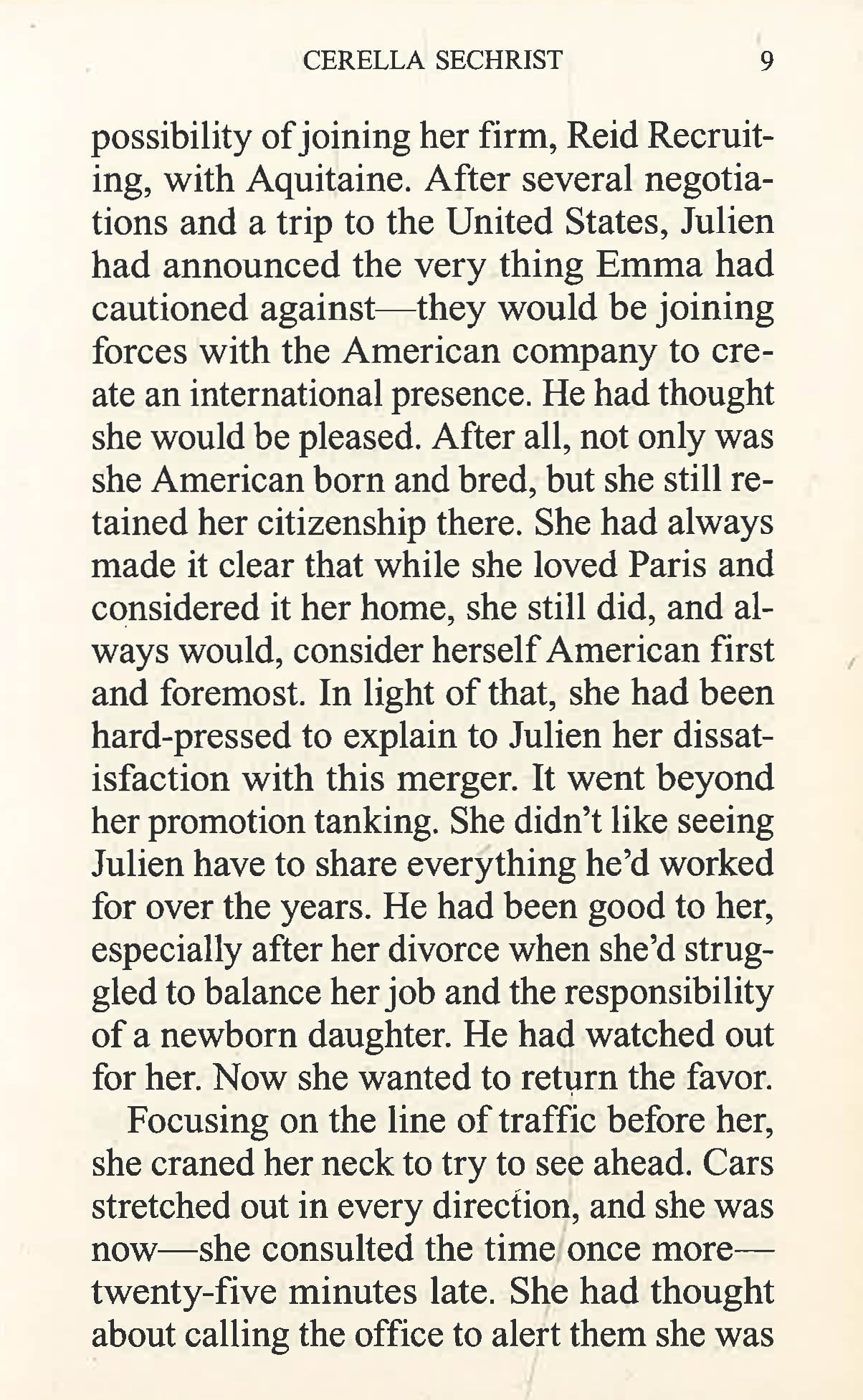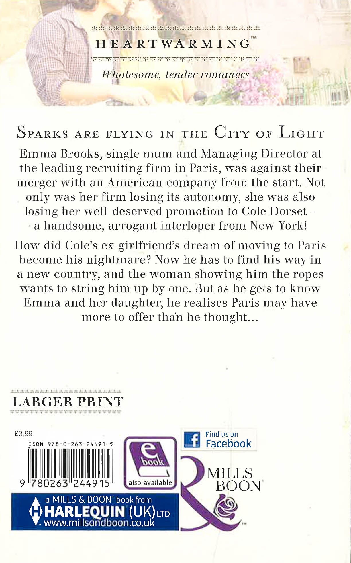 Emma Brooks, single mum and Managing Director at the leading recruiting firm in Paris, was against their merger with an American company from the start. Not only was her firm losing its autonomy, she was also losing her well-deserved promotion to Cole Dorset –